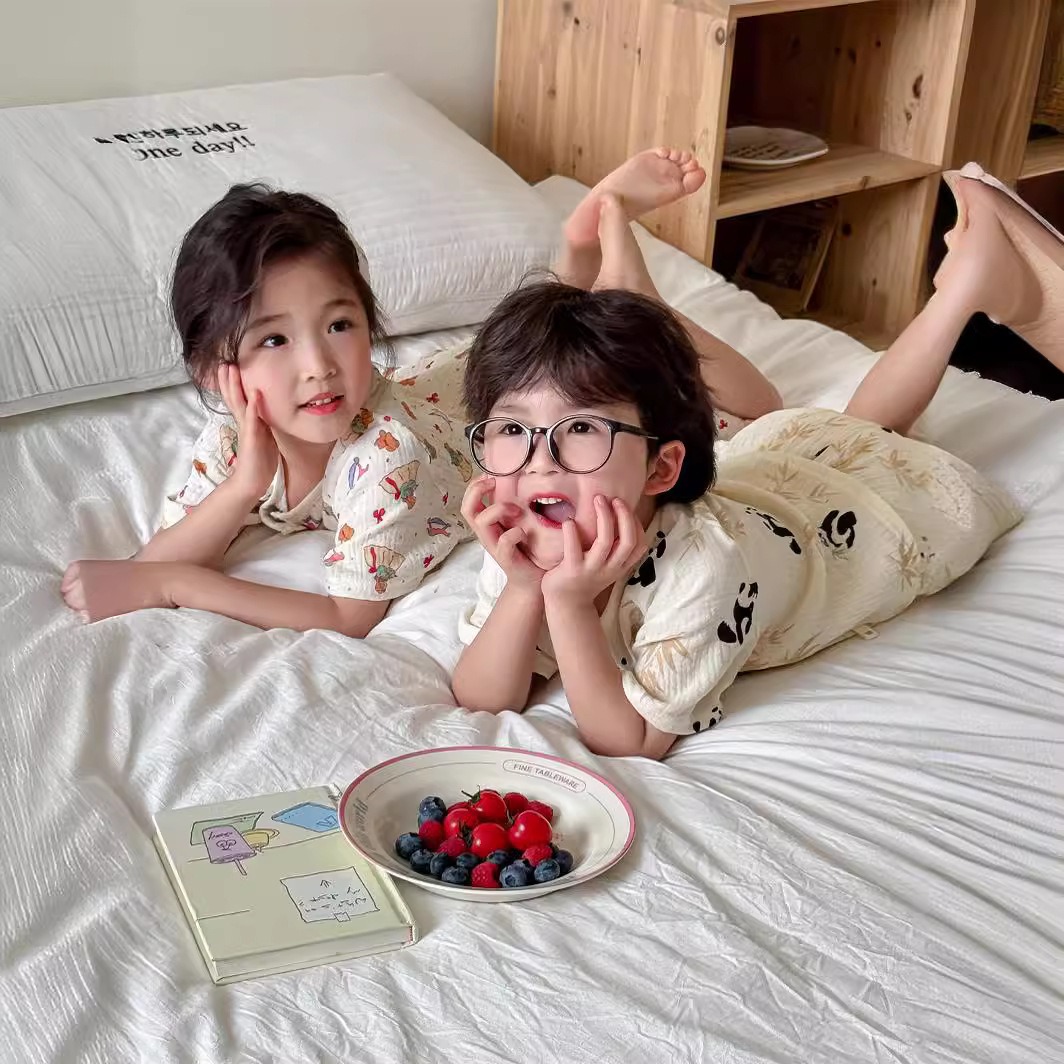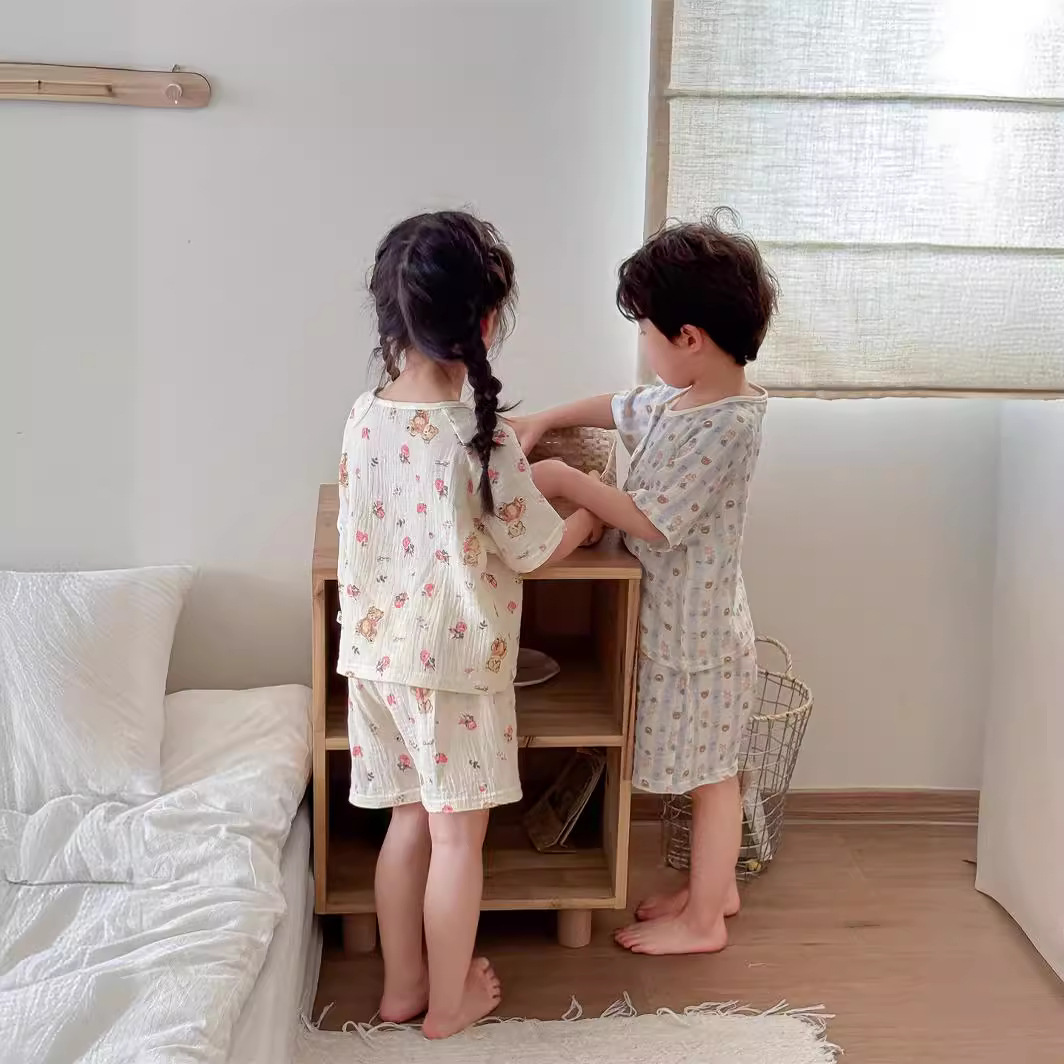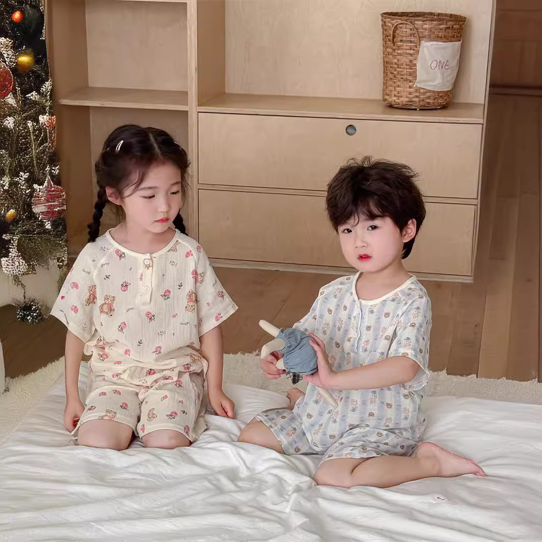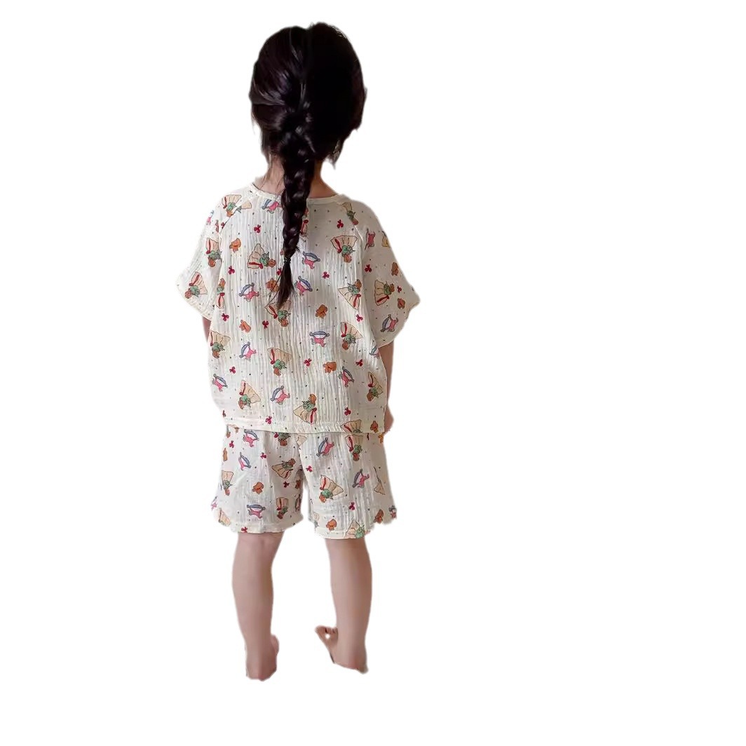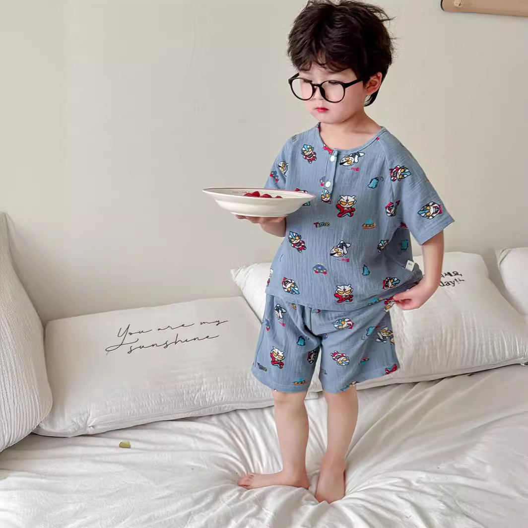 | nameOriginal | Chuchen Children's Double-Layer Zou Cloth Pajamas suit Summer Men's and Women's Short-Sleeved Shorts Cotton Yarn Home Clothes Baby Two-Piece Set |