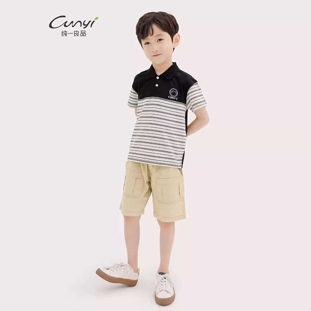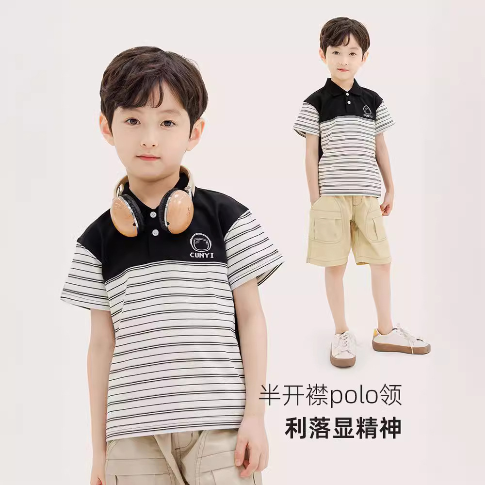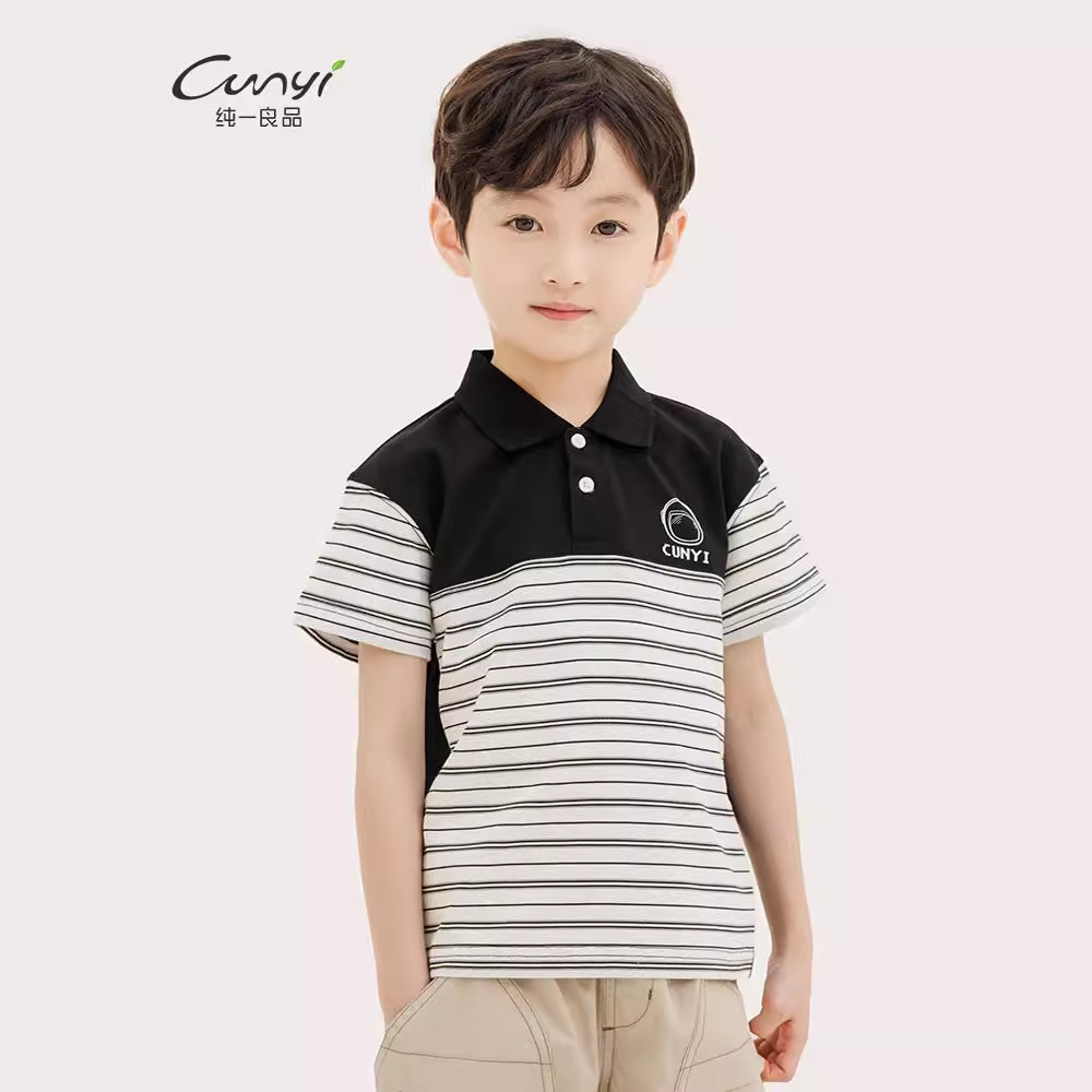 Chunyipin Children’s Wear Boy’s POLO Shirt 2024 Summer Cotton Soft Skin-friendly Breathable Short-sleeved Top BY242326