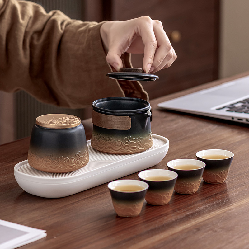 | nameOriginal | Chupu Ceramic Travel Tea Set suit Kiln Change One Pot Four Cups with Tea Jar Dry Bubble Plate Portable Outdoor Tea Set |