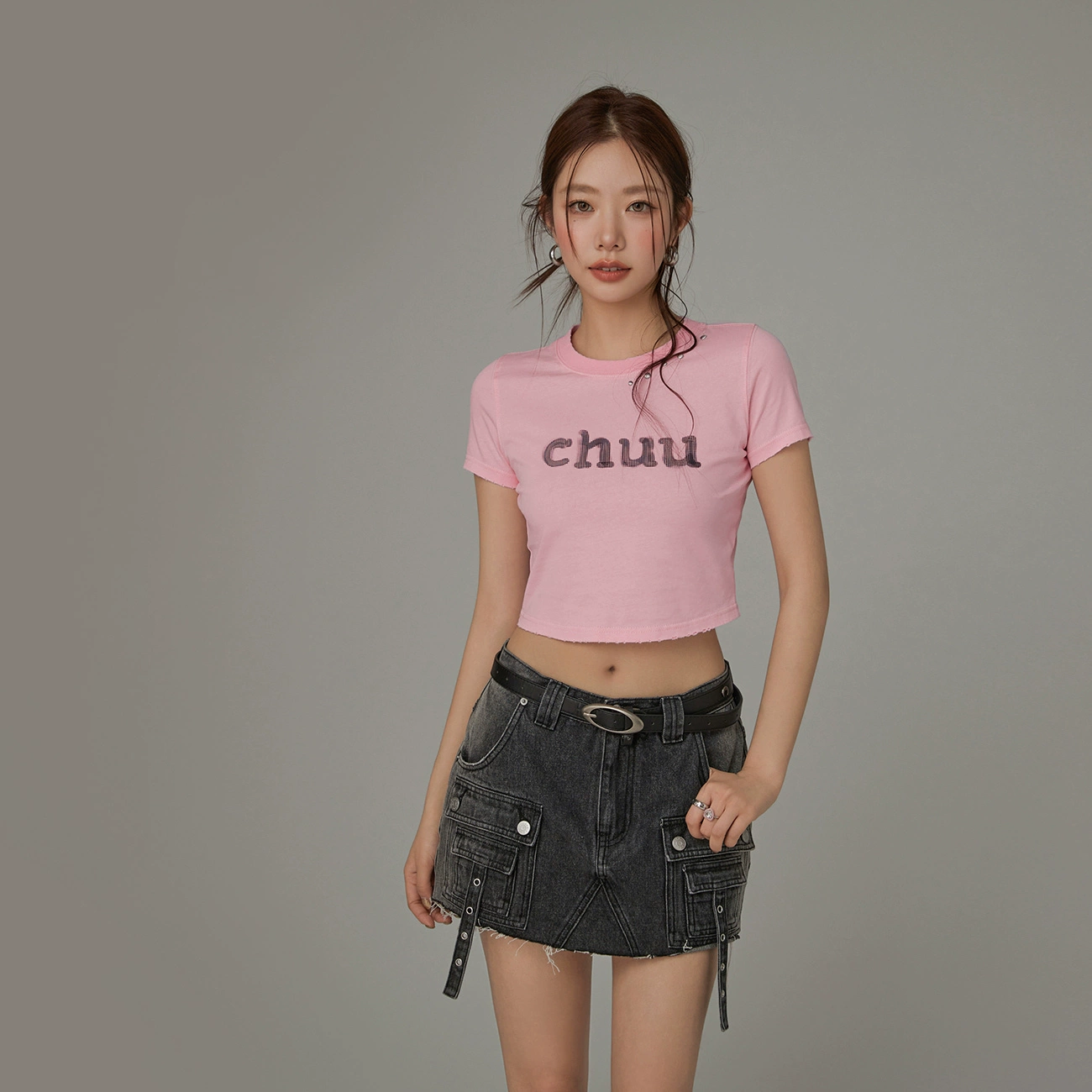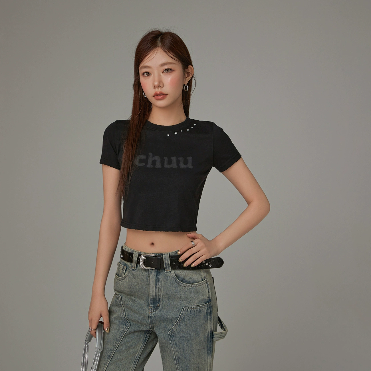 CHUU frayed rivets slim fit short-sleeved printed T-shirt