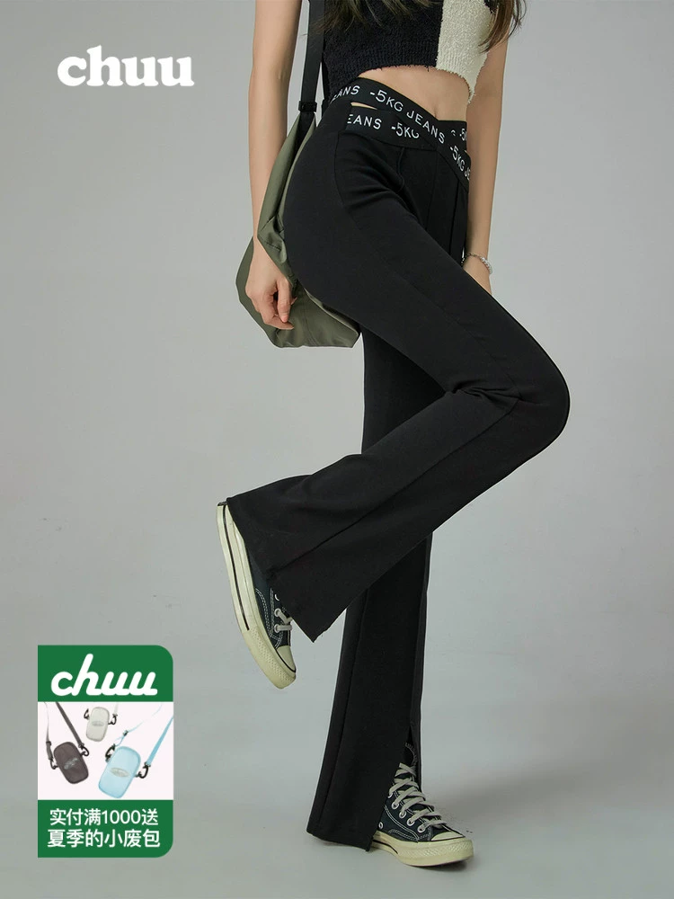| nameOriginal | CHUU high-waist casual pants women's 2024 spring and autumn slit micro-flare sweatpants cross letter design long pants thin |