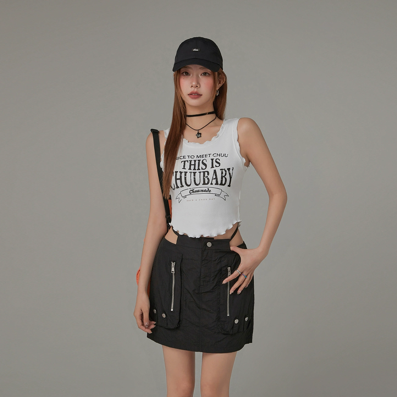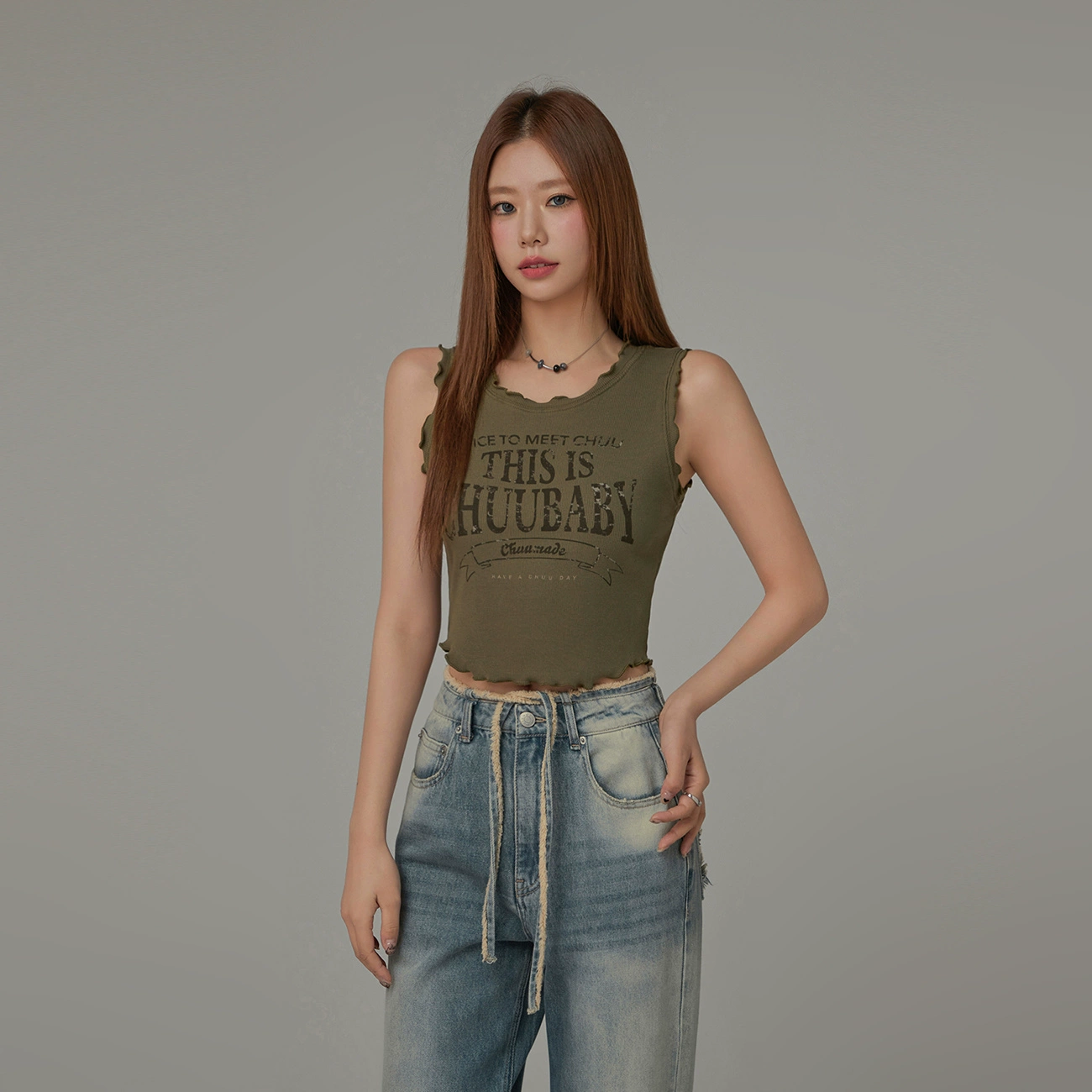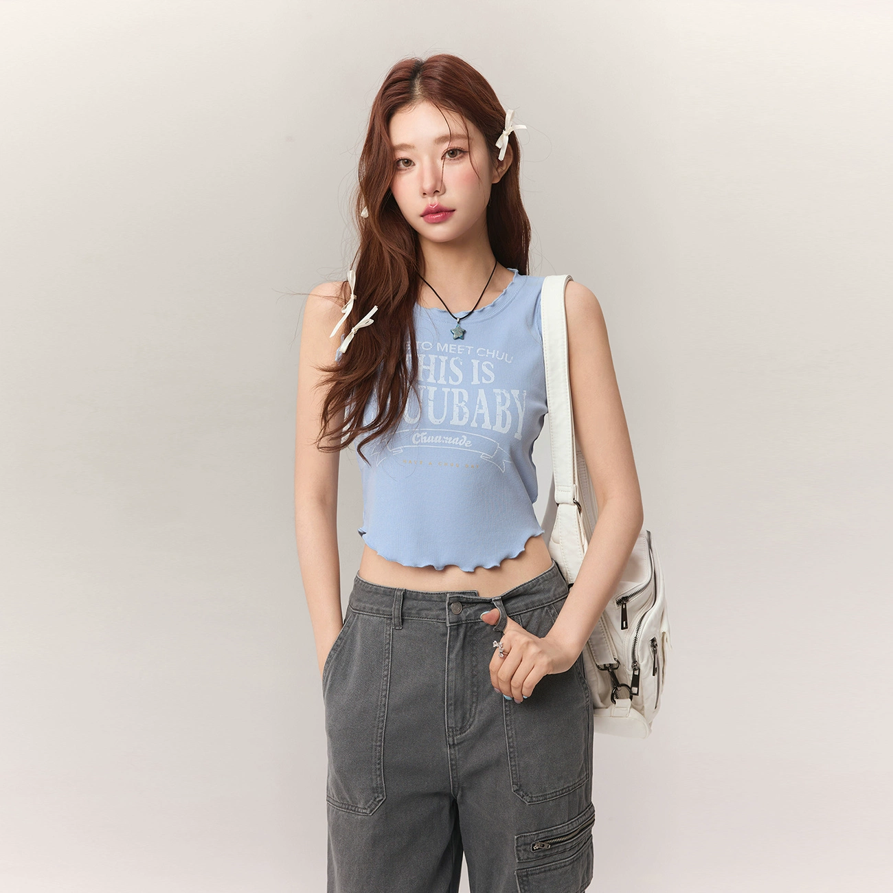 | nameOriginal | CHUU letters sleeveless summer fungus trim vest |