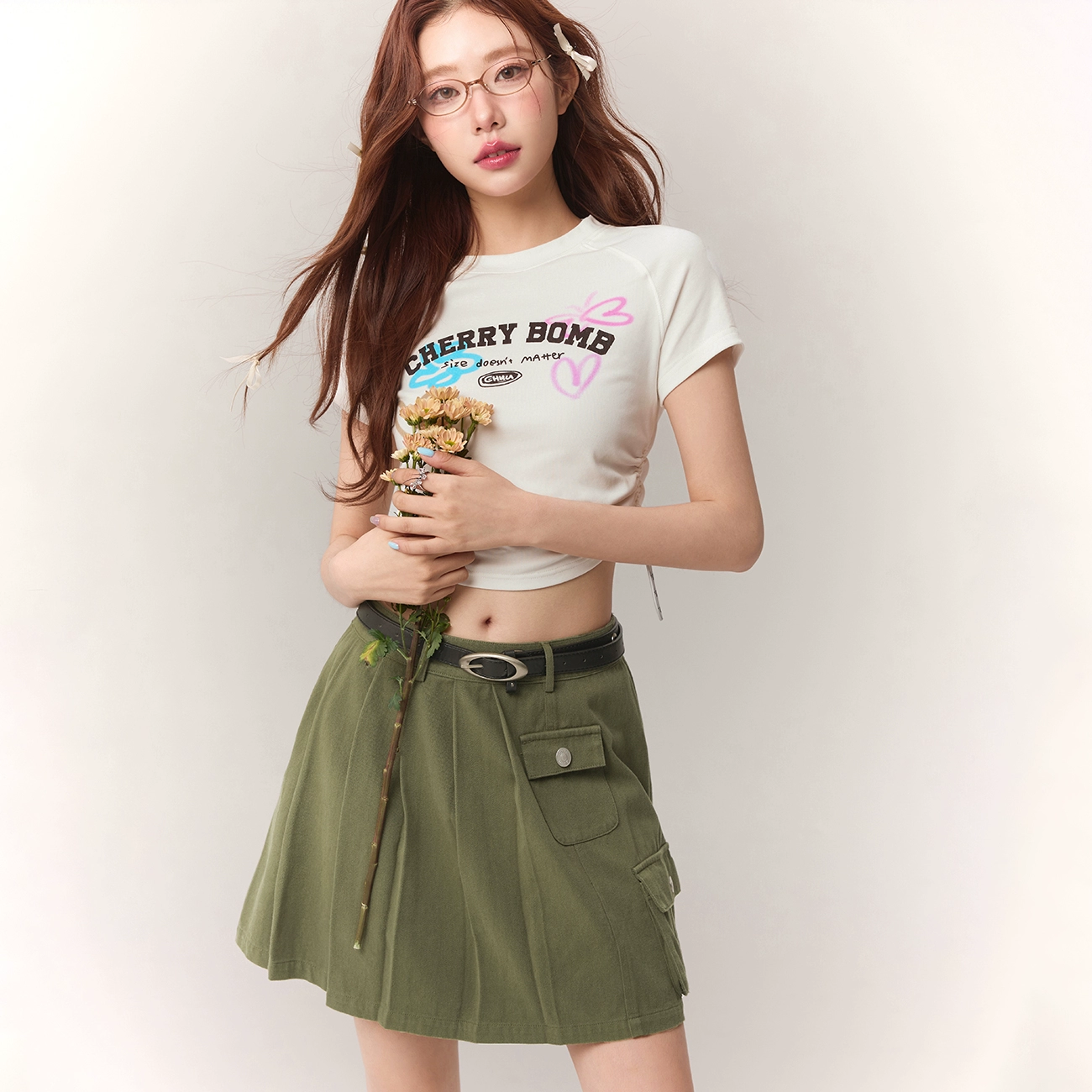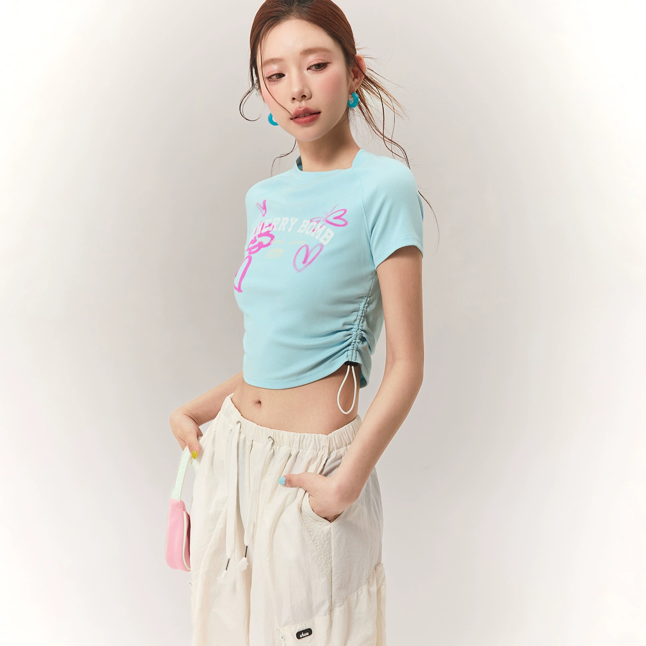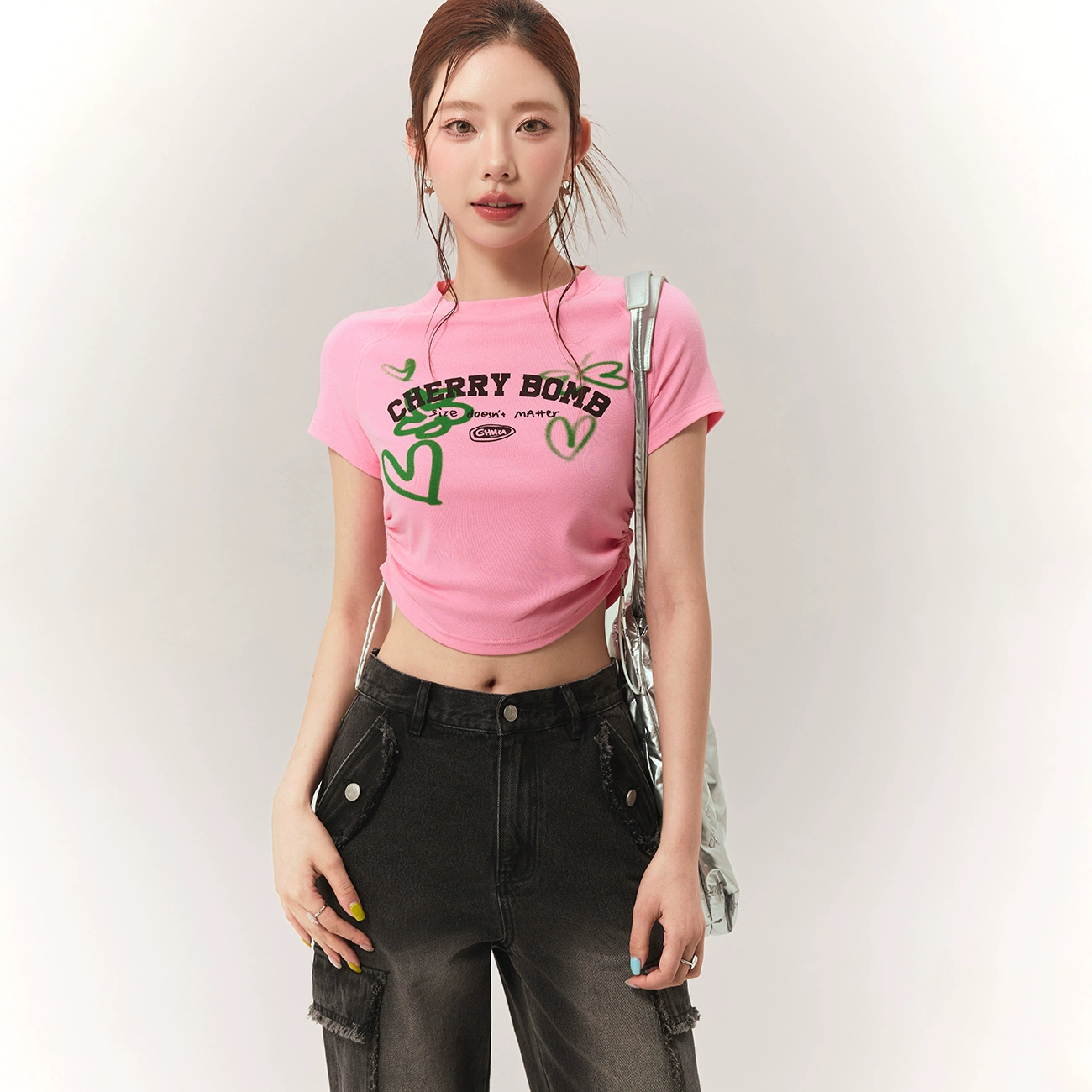 | nameOriginal | CHUU love drawstring pleated short-sleeved printed T-shirt |