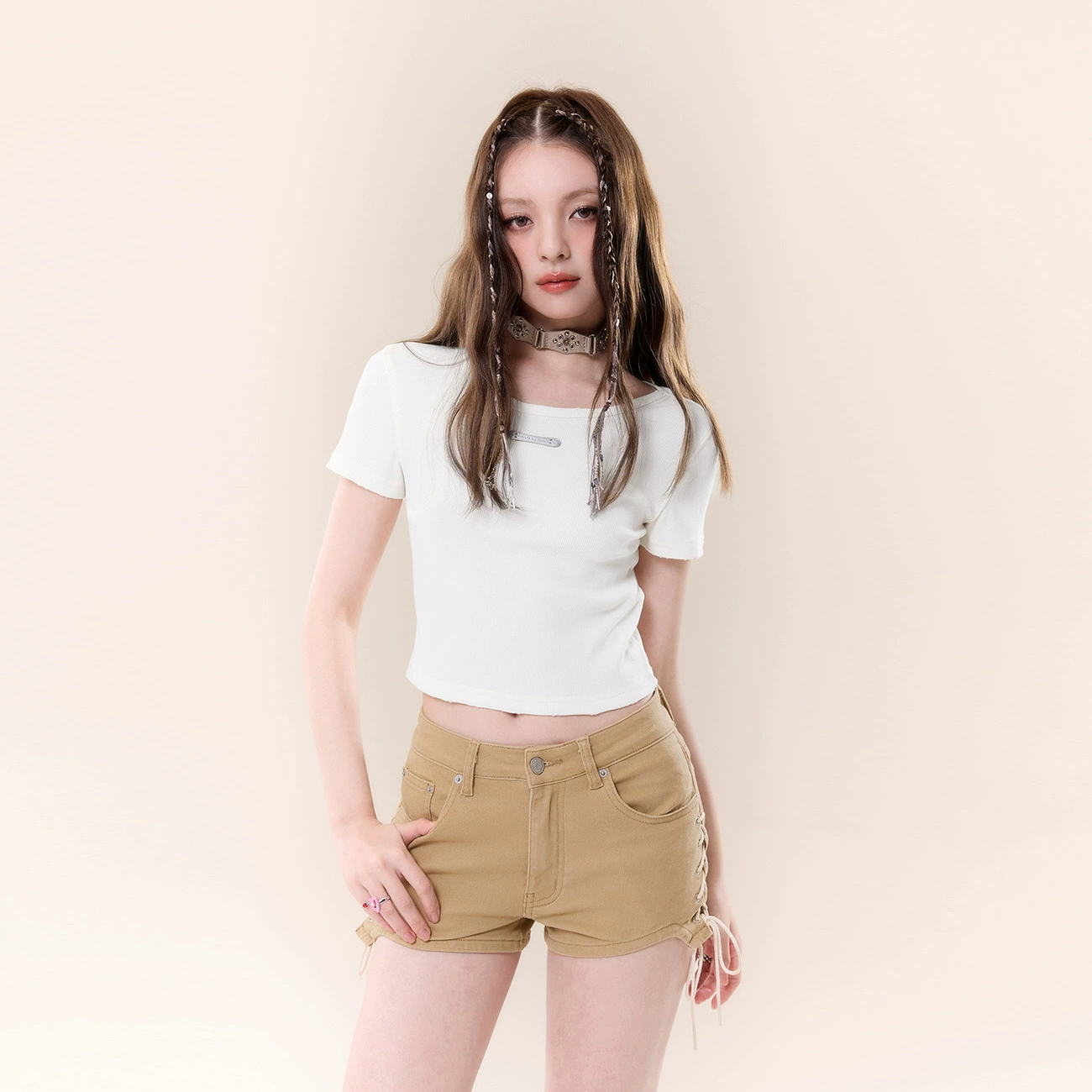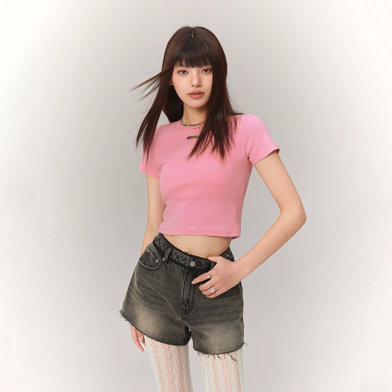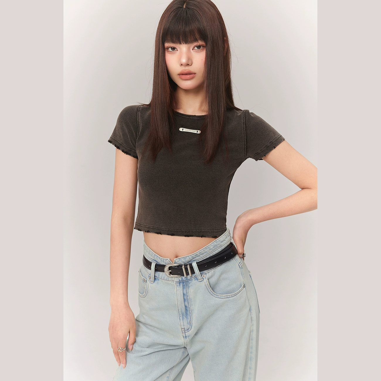 | nameOriginal | CHUU metal label worn hot girl slim short-sleeved T-shirt |