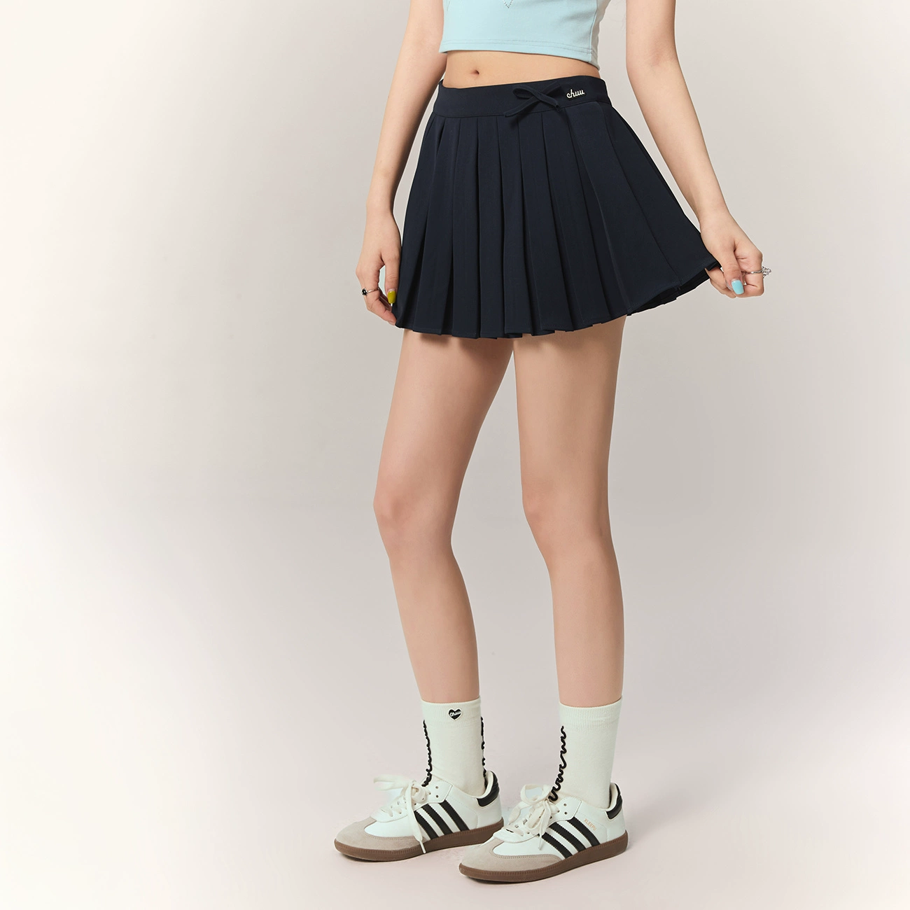| nameOriginal | CHUU sweet zipper navy a-line pleated skirt |