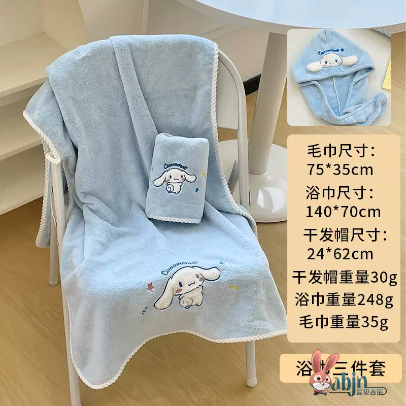 | nameOriginal | Cinnamon dog bath towel thickened water-absorbent quick-drying household towel dormitory students non-shedding coral velvet shower cap three-piece set |