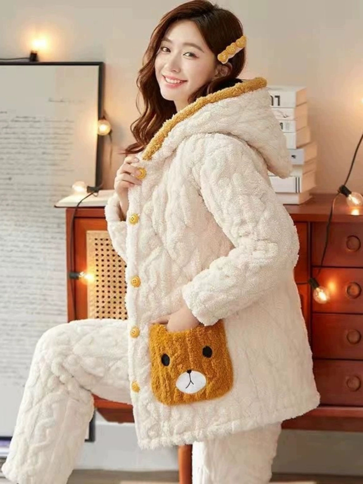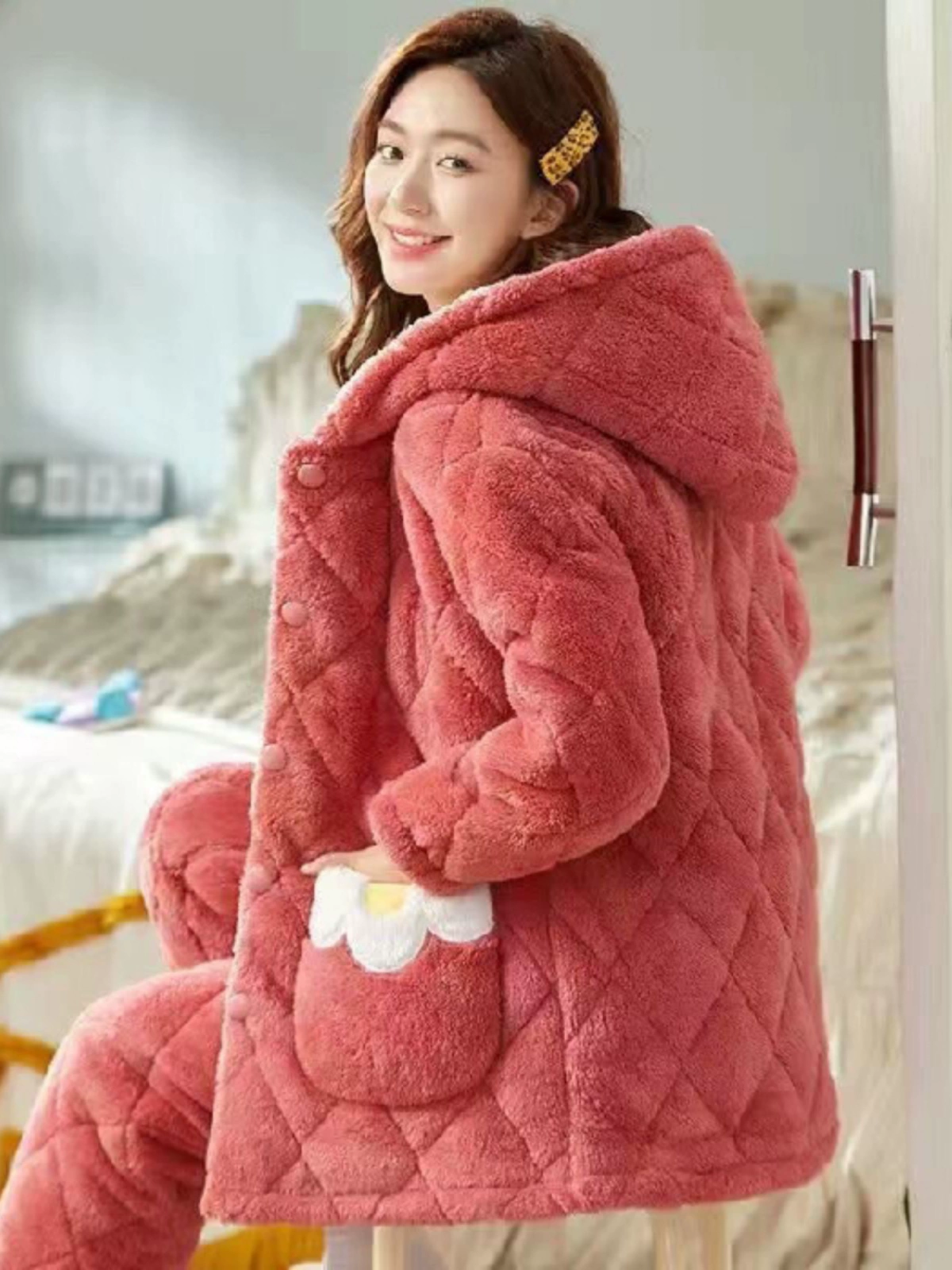 | nameOriginal | Cinnamon dog pajamas for women in autumn and winter, coral velvet plus velvet, thickened and warm, three-layer quilted winter home clothes that can be worn outside |