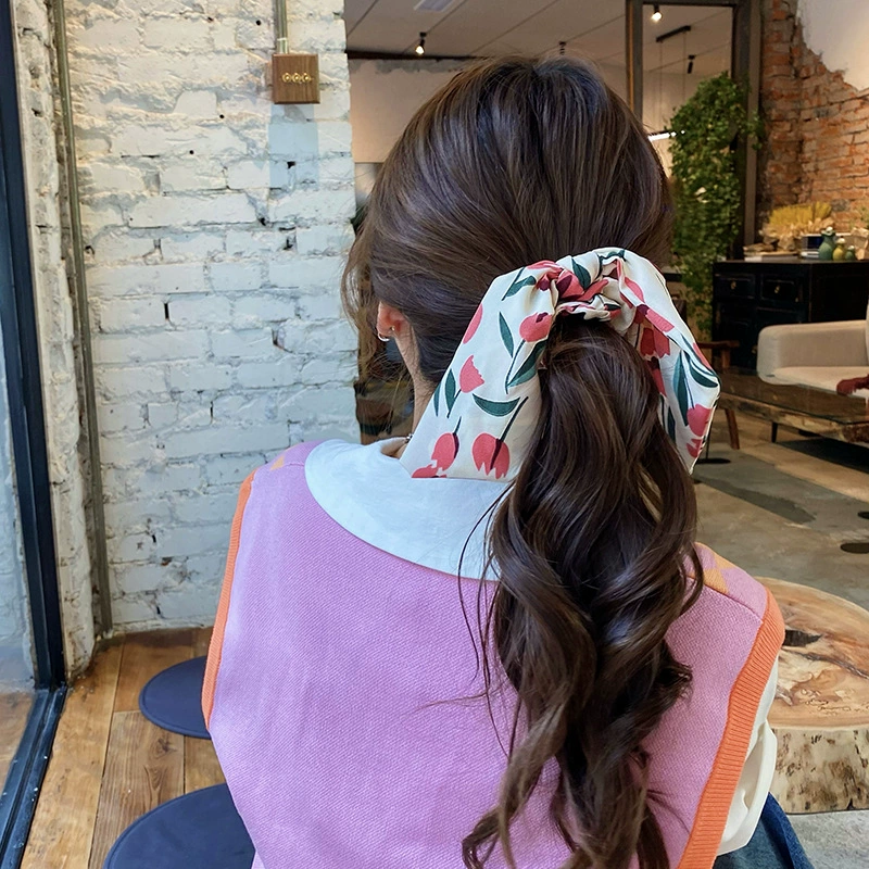 | nameOriginal | Circle retro ribbon ponytail tied with tulips |