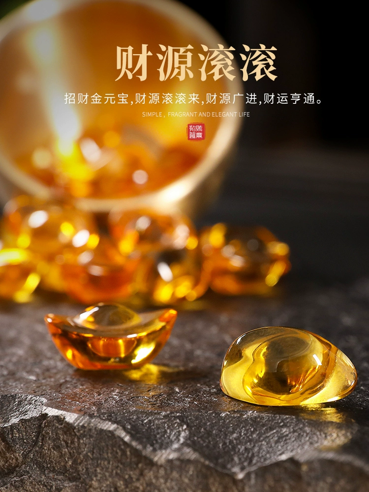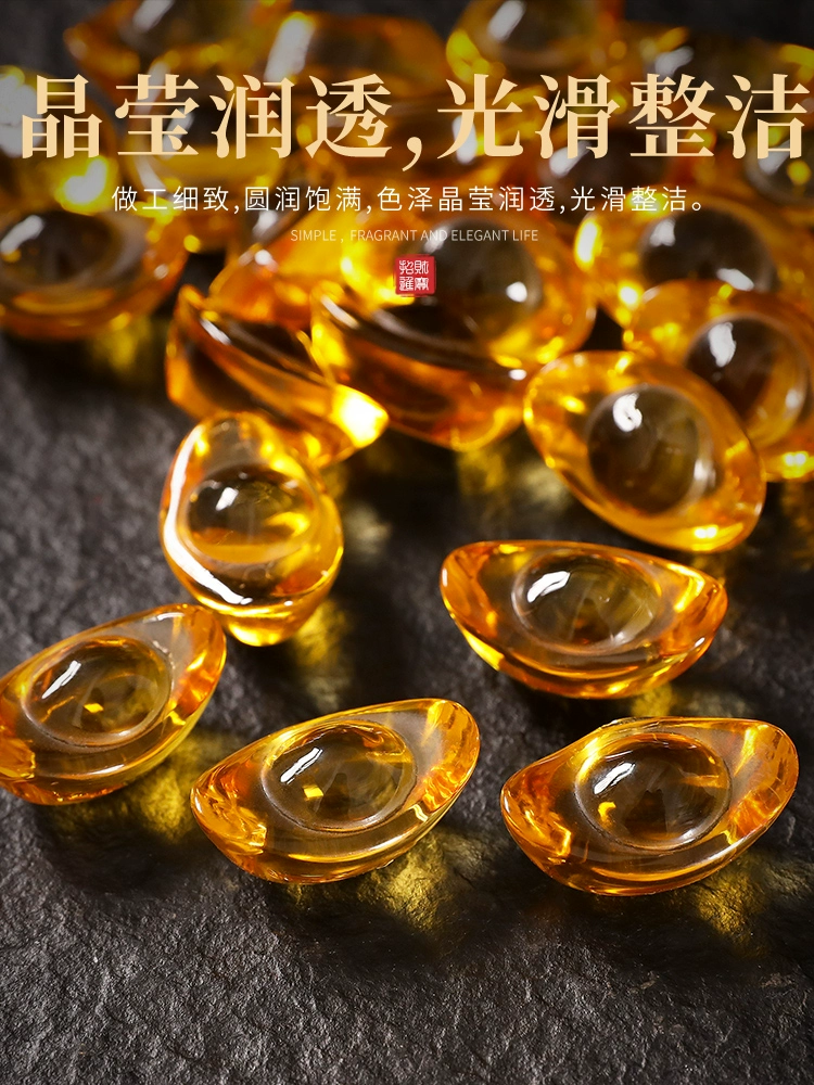 Citrine ingot ornaments, glass ingots, large and small, mini fortune cornucopia, home decorations, opening gifts
