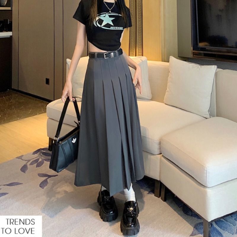 | nameOriginal | civicera Gray Suit Mid-length Skirt Women's Spring and Summer High Waist Slimming Elegant Casual Pleated Skirt Long Skirt |