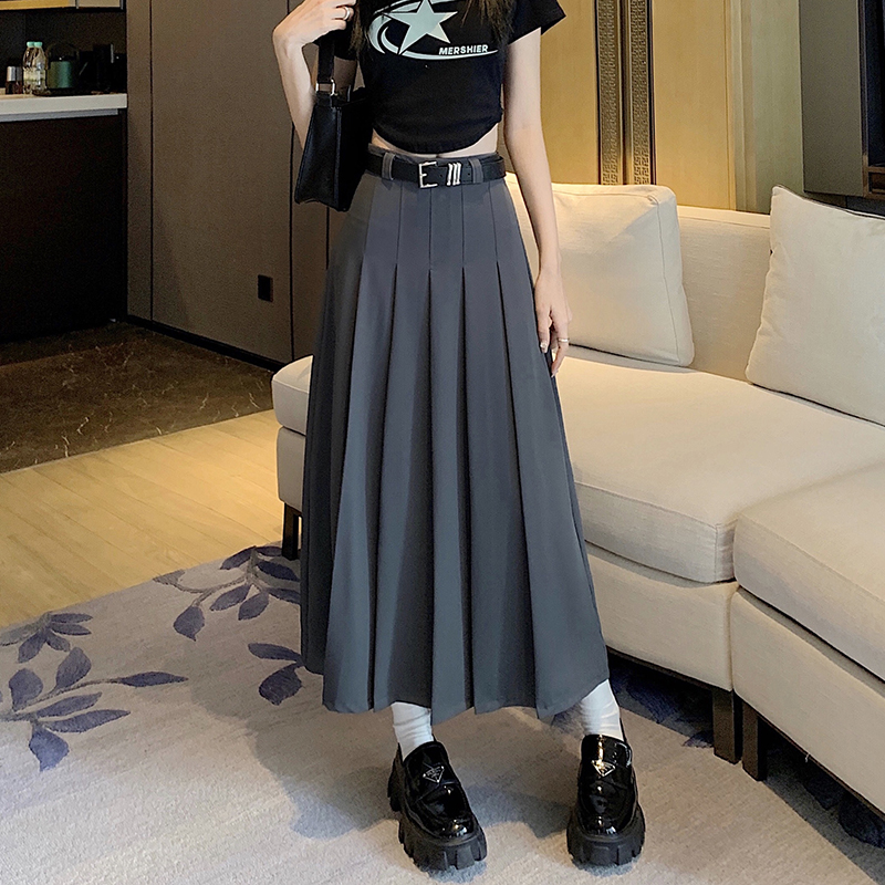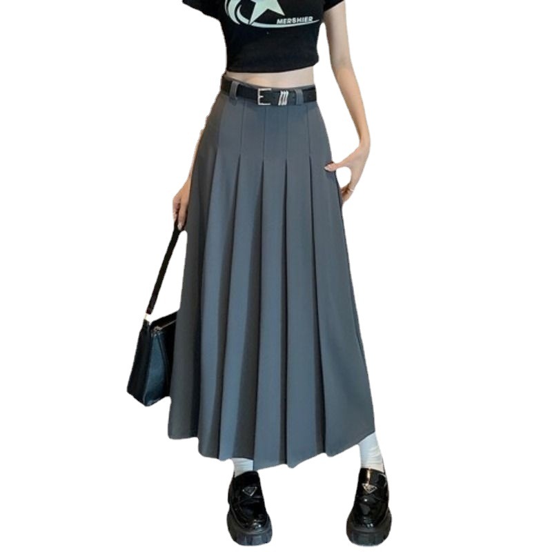 | nameOriginal | civicera Gray Suit Mid-length Skirt Women's Spring and Summer High Waist Slimming Elegant Casual Pleated Skirt Long Skirt |
