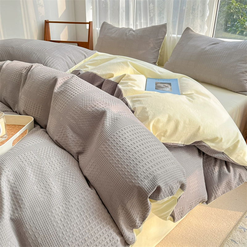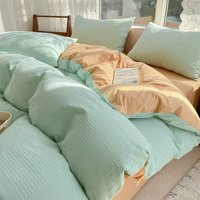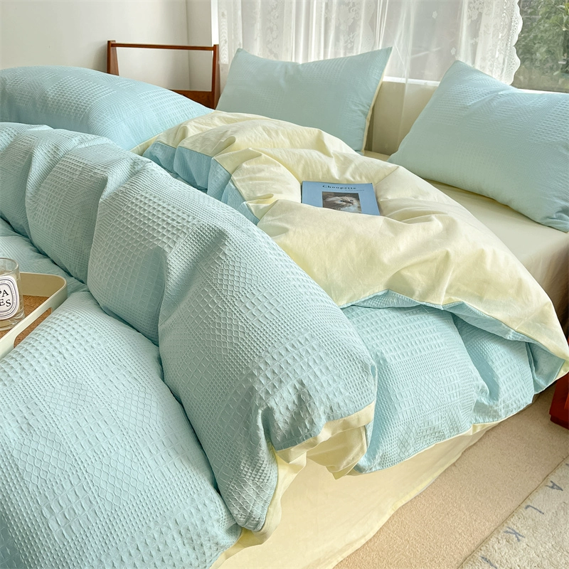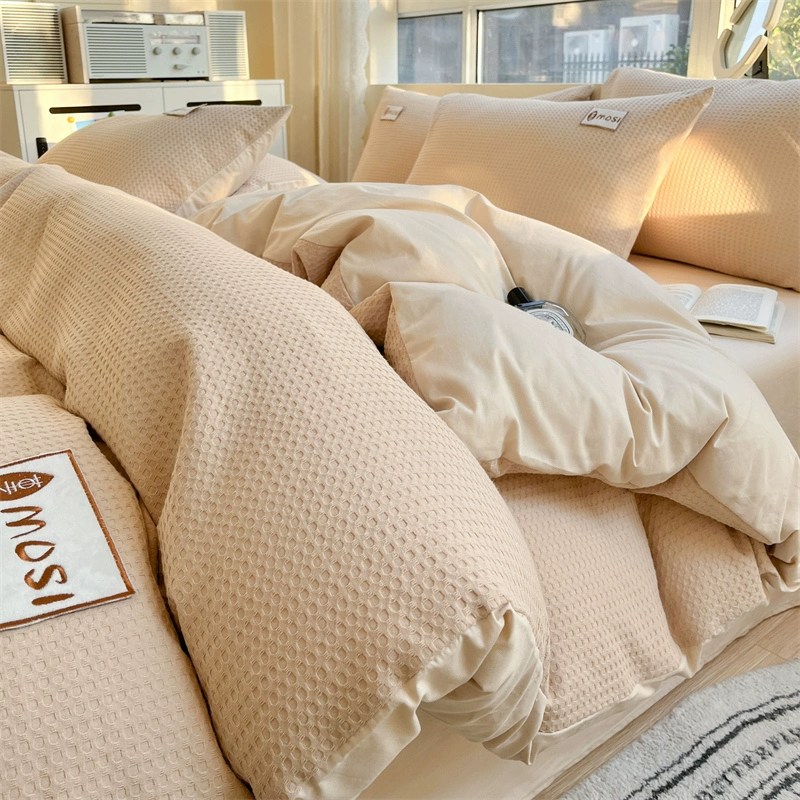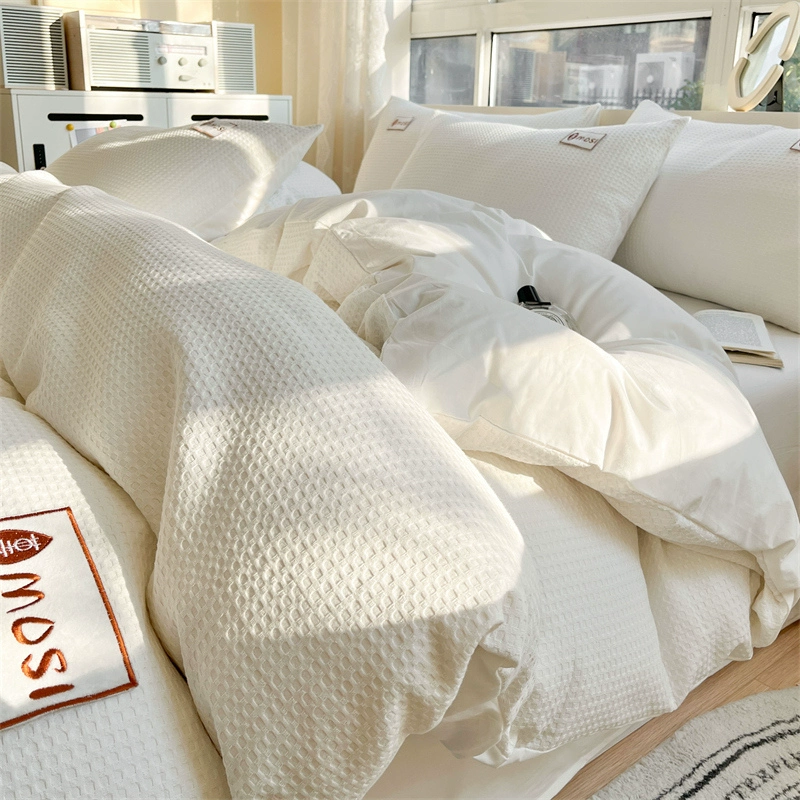 Class A 60 count waffle cotton 100 cotton washed cotton four-piece set bed sheet quilt cover student dormitory three-piece set white