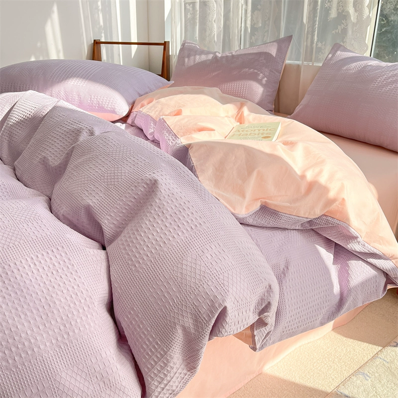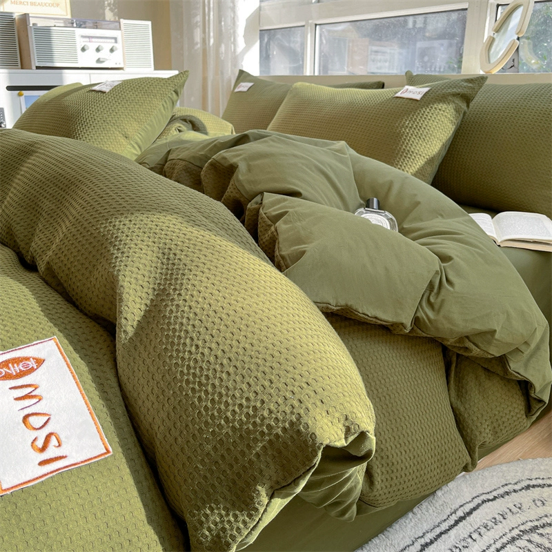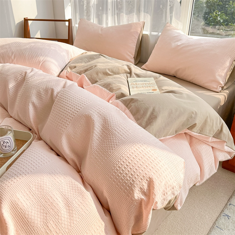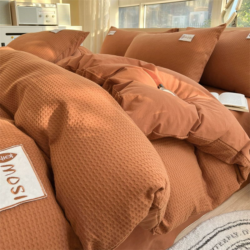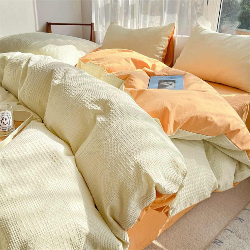 Class A 60 count waffle cotton 100 cotton washed cotton four-piece set bed sheet quilt cover student dormitory three-piece set white