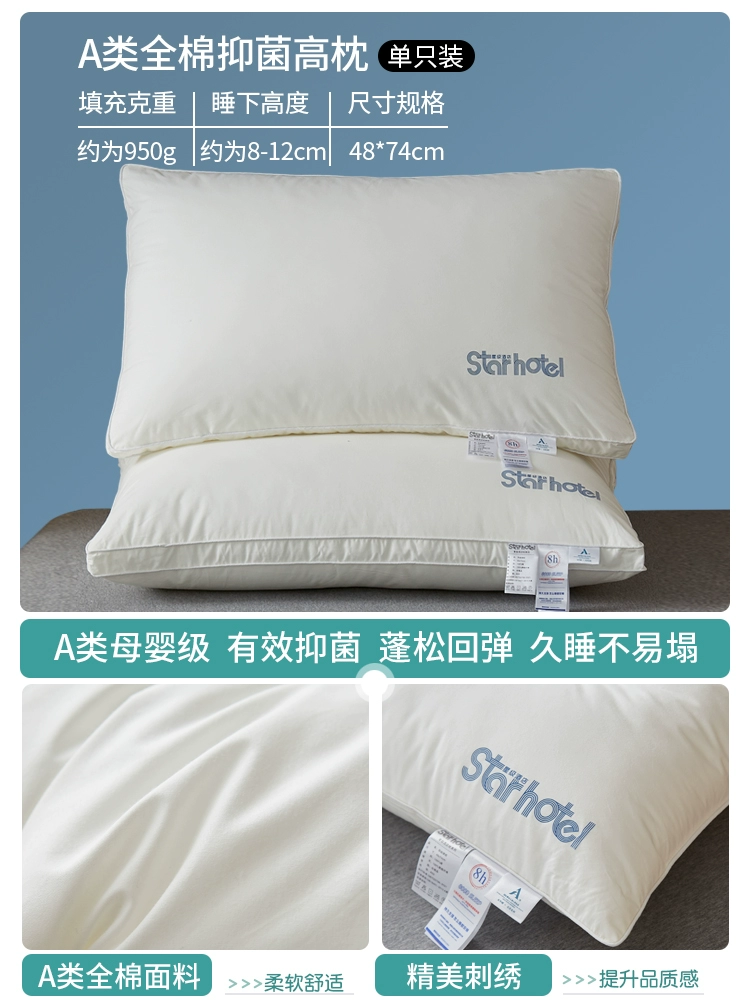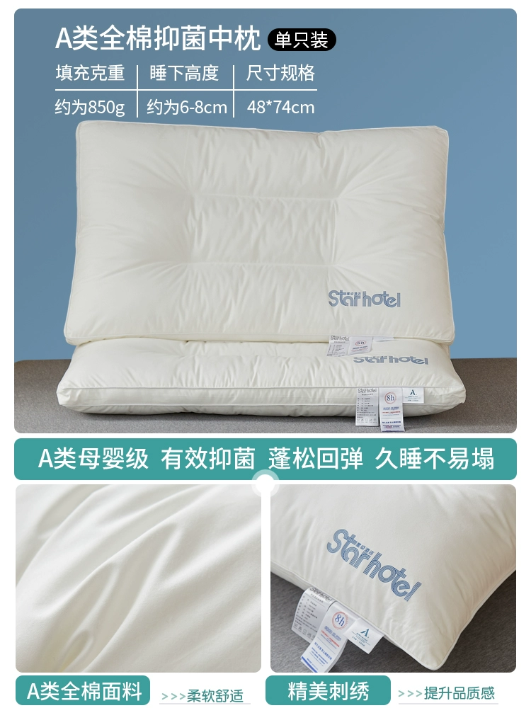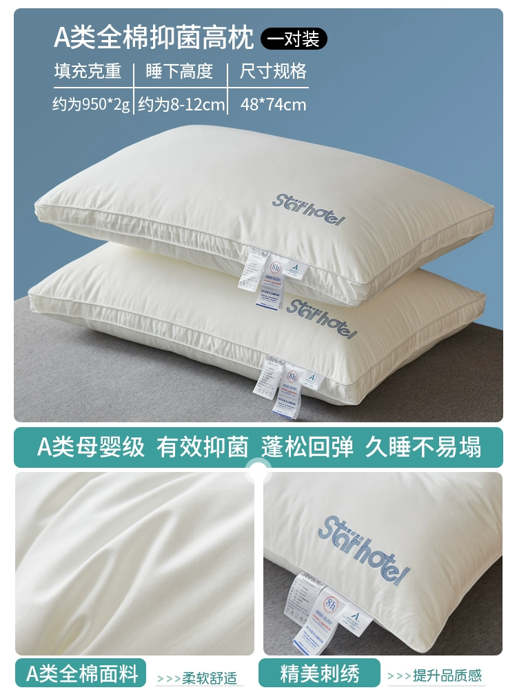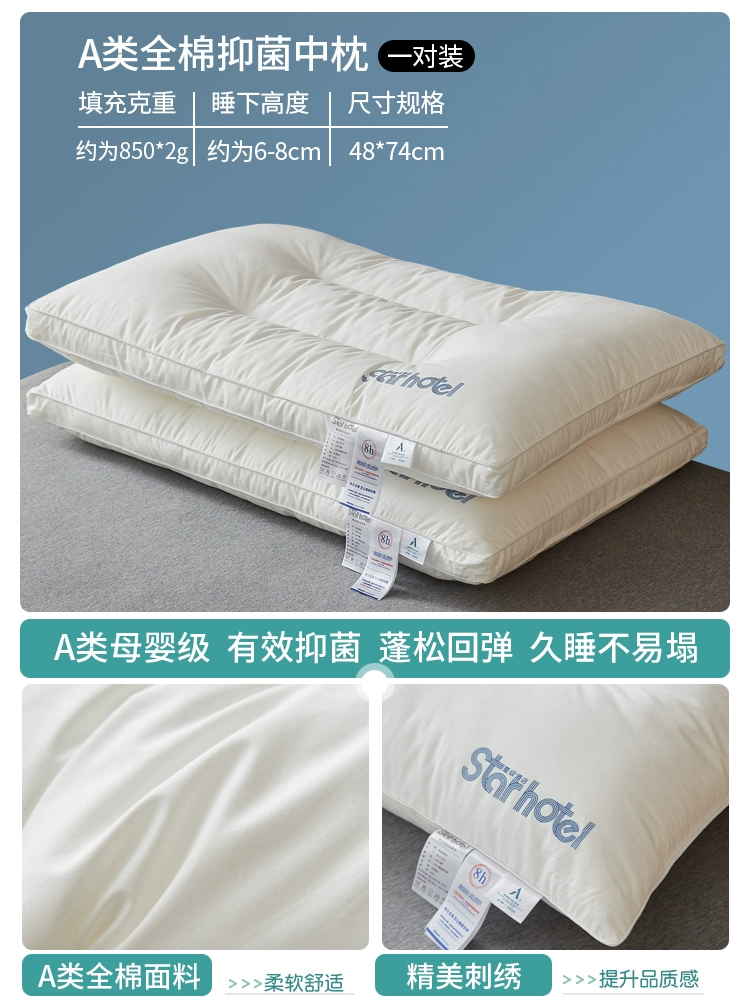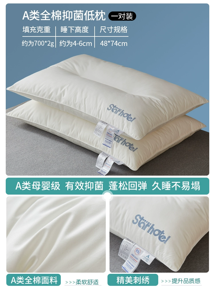 | nameOriginal | Class A cotton pillow core home cervical vertebra support sleep aid pair set student dormitory super soft low pillow hotel |