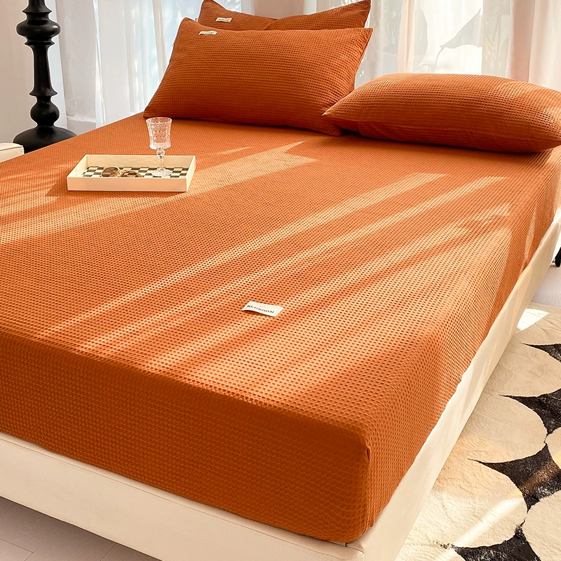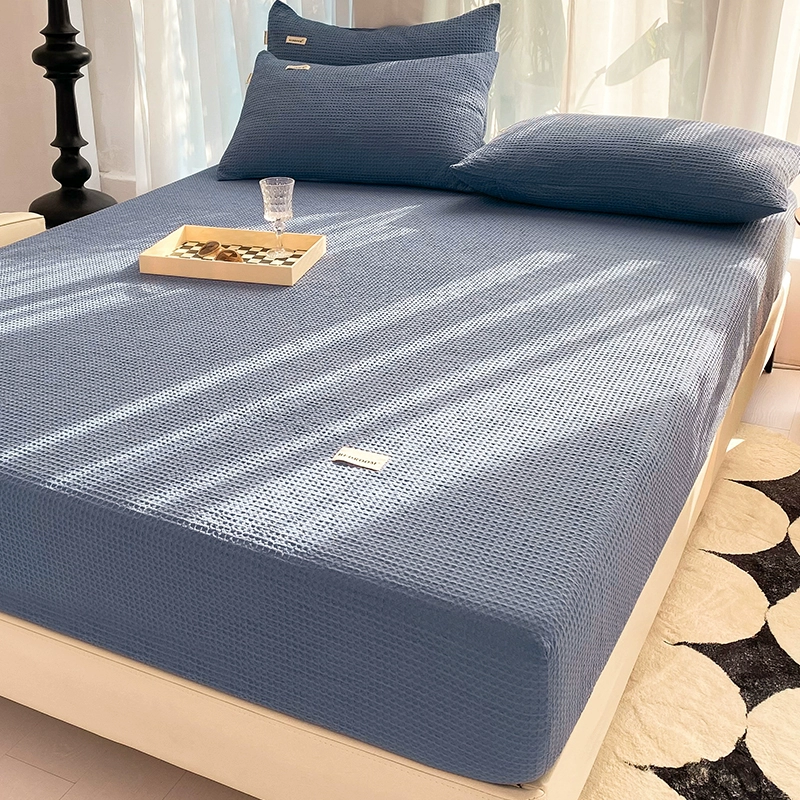 | nameOriginal | Class A cotton waffle fitted sheet single piece pure cotton simple solid color bed cover mattress protector Simmons dust cover |