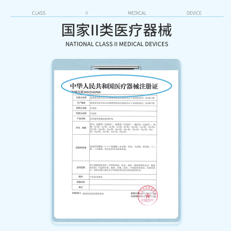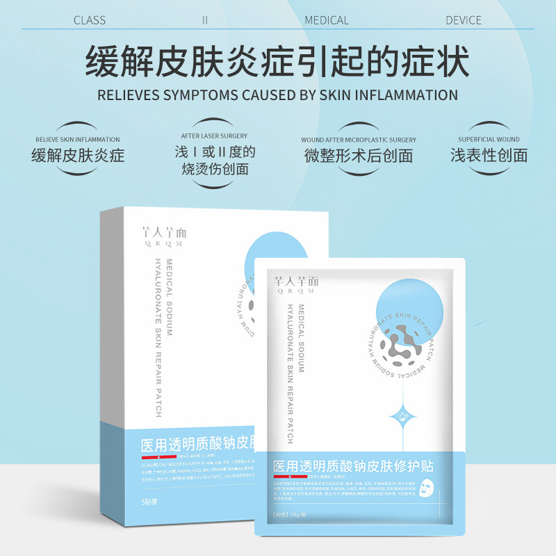 | nameOriginal | Class II Mechanical Font Size Medical Sodium Hyaluronate Skin Repair Patch Aseptic Repair Patch after Beauty Salon Surgery |