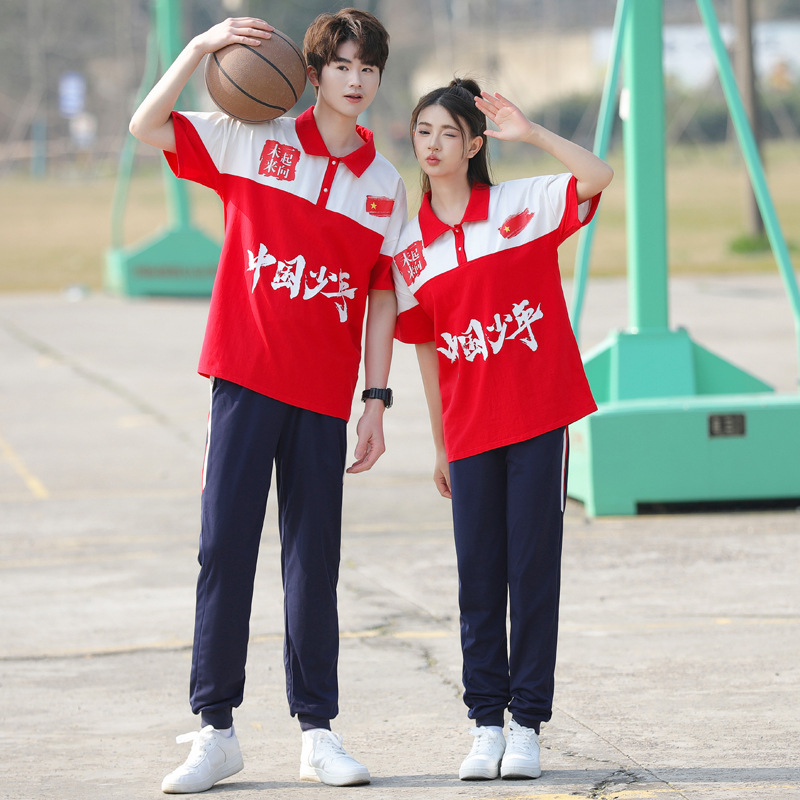 | nameOriginal | Class uniform academic style 2024 real shot couple academic style pullover summer short sleeve pants suit sports uniform |