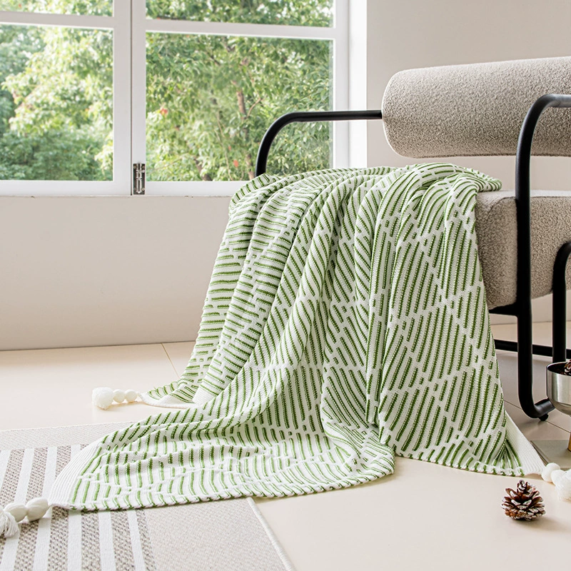 | nameOriginal | Classic American retro green striped sofa blanket bed cover blanket woven blanket hotel bedside towel bedside blanket |
