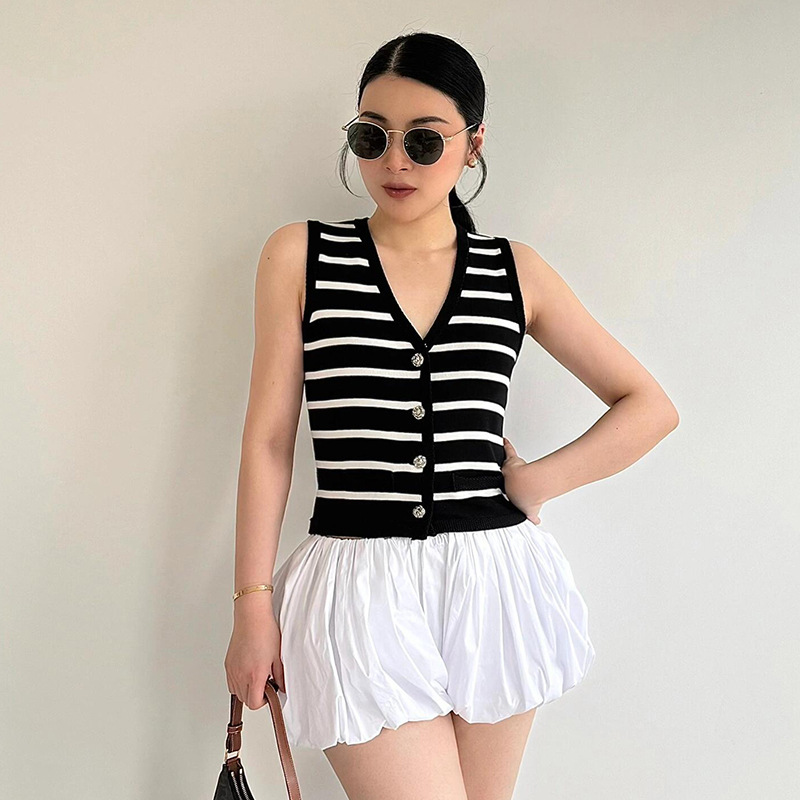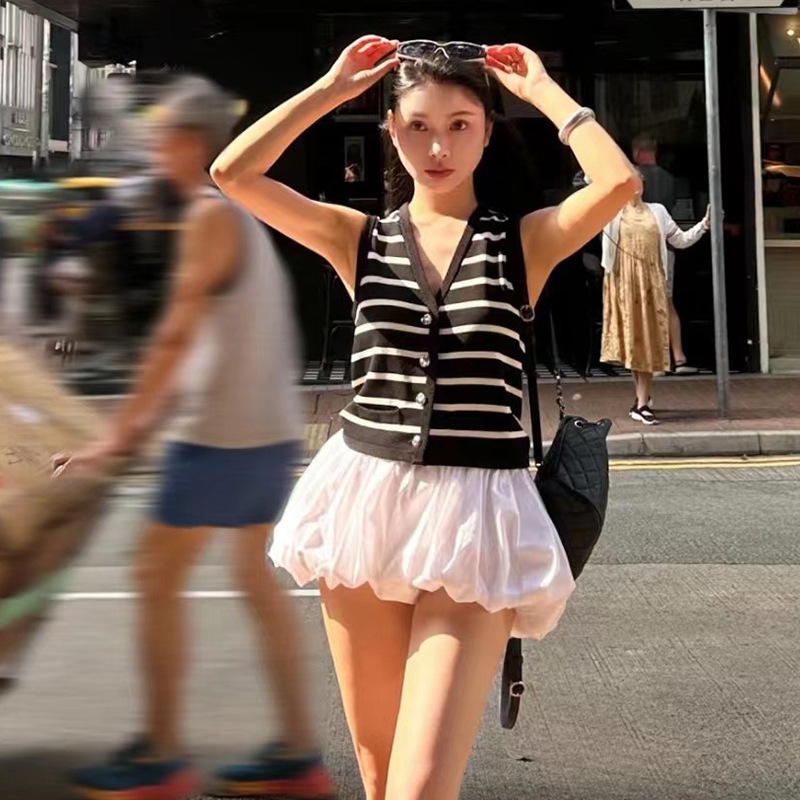 | nameOriginal | Classic Black and White Striped Knitted Vest Women's Summer 2024 New Fashionable All-match Anti-wrinkle Comfortable Top |