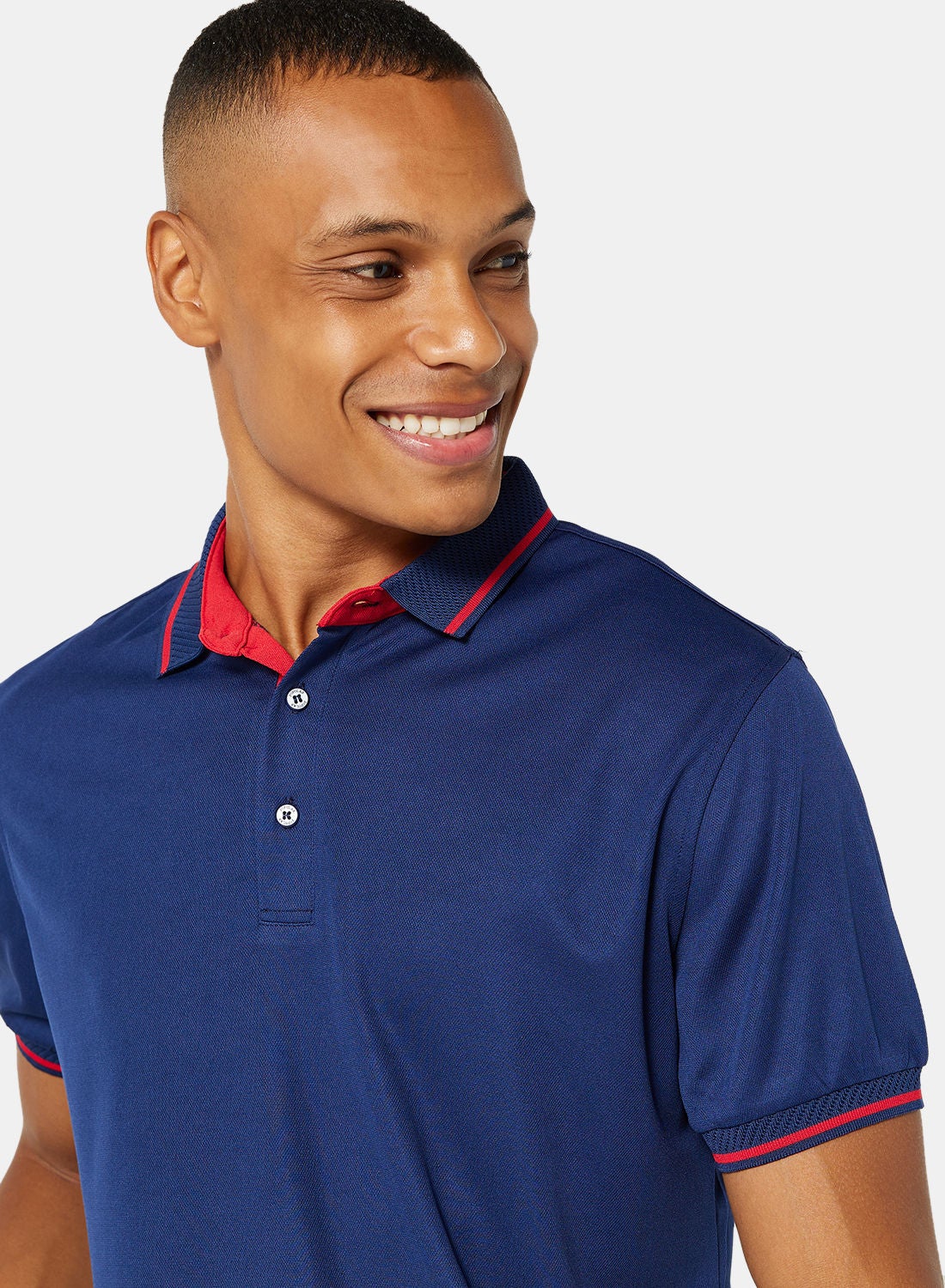 This product features a flexible polyester material that is both comfortable and durable. It also includes breathable mesh panels on the neckline and arm cuffs for added ventilation. The collar neck and short sleeves provide a classic look, while the secure button down front placket ensures a secure fit. This product has a regular fit and can be washed according to the care label instructions. The model shown is approximately 183 cm tall and is wearing a size M.