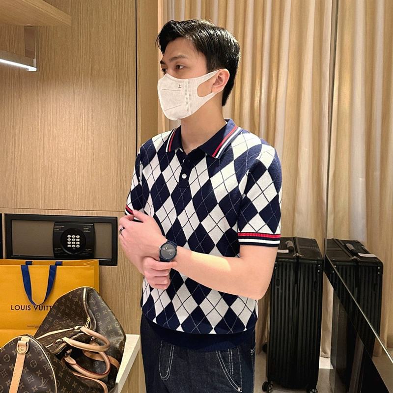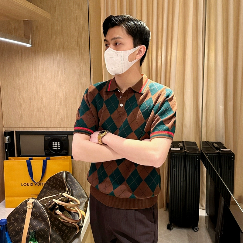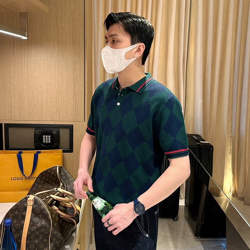 | nameOriginal | Classic mature short-sleeved diamond polo lapel t-shirt |