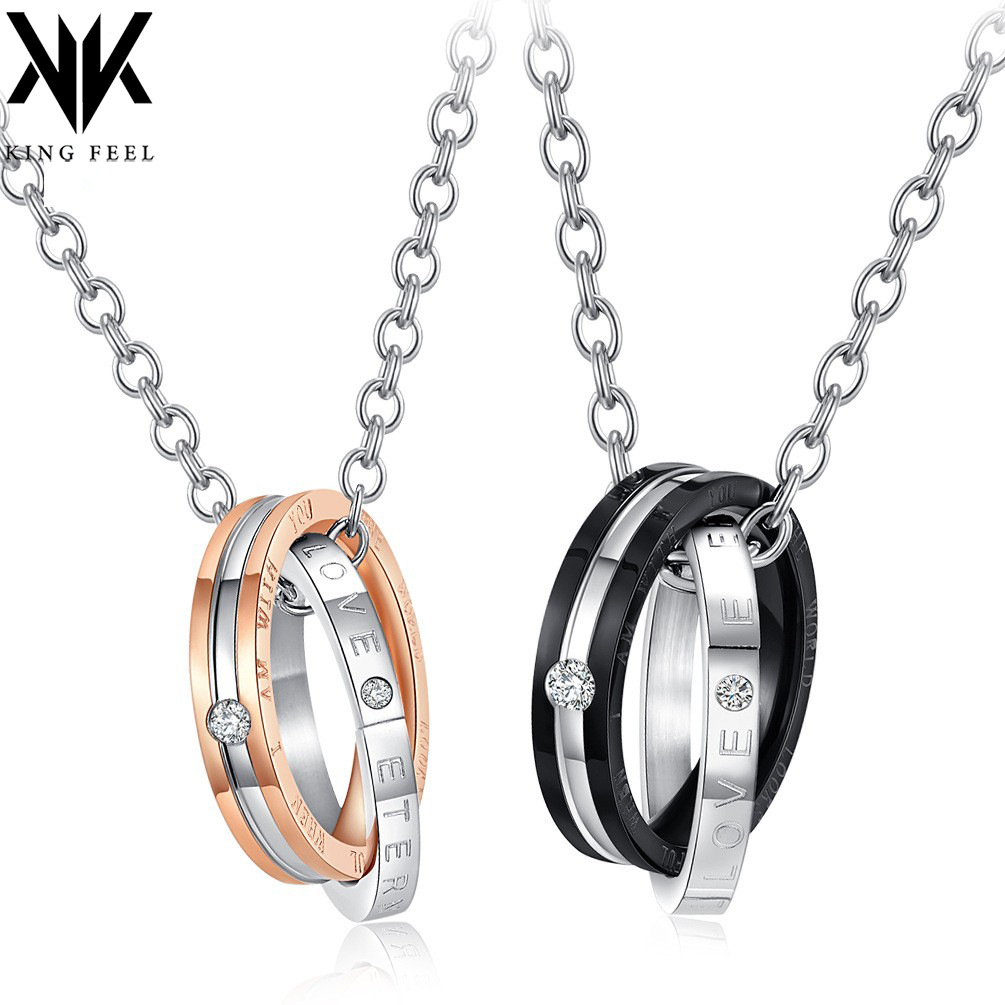 Classic style eternal love men and women double ring diamond couple necklace titanium steel double ring hipster neutral pendant