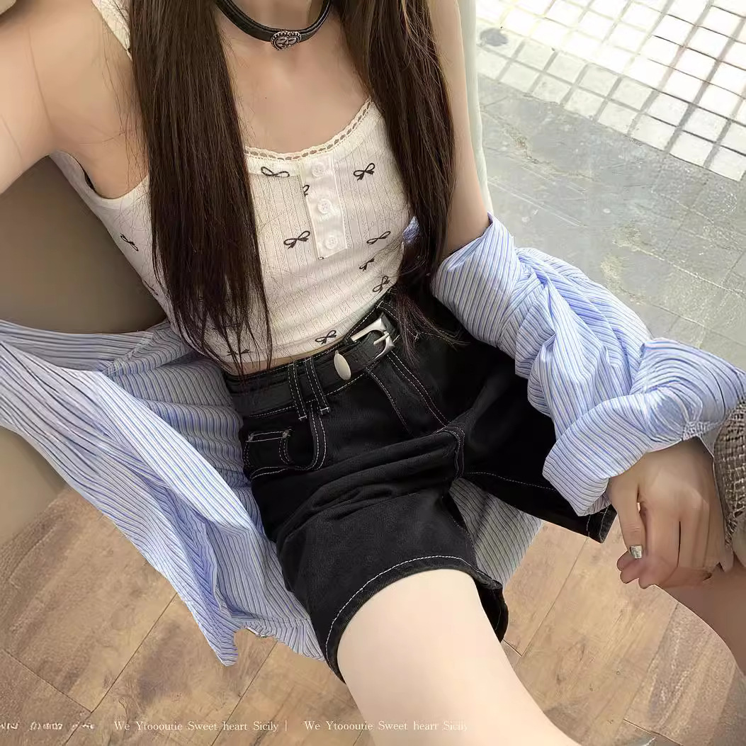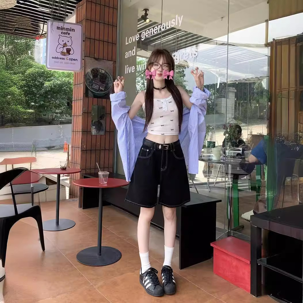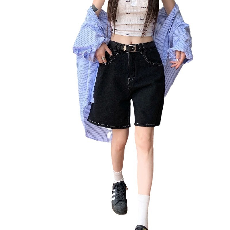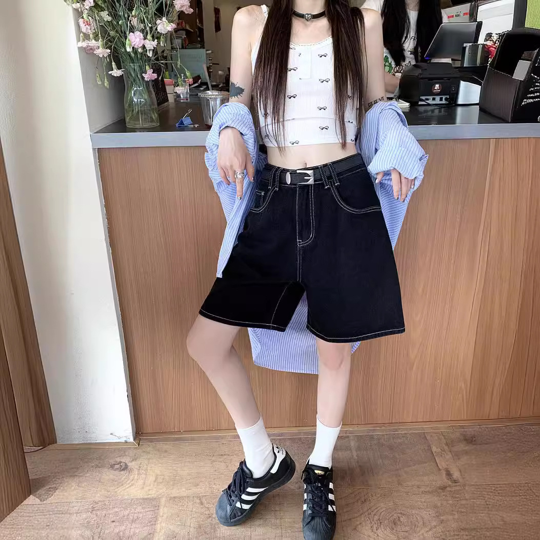 | nameOriginal | Classic Versatile Black Denim Pants Women's Summer High Waist Straight Wide Leg Pants Casual Pants Shorts |