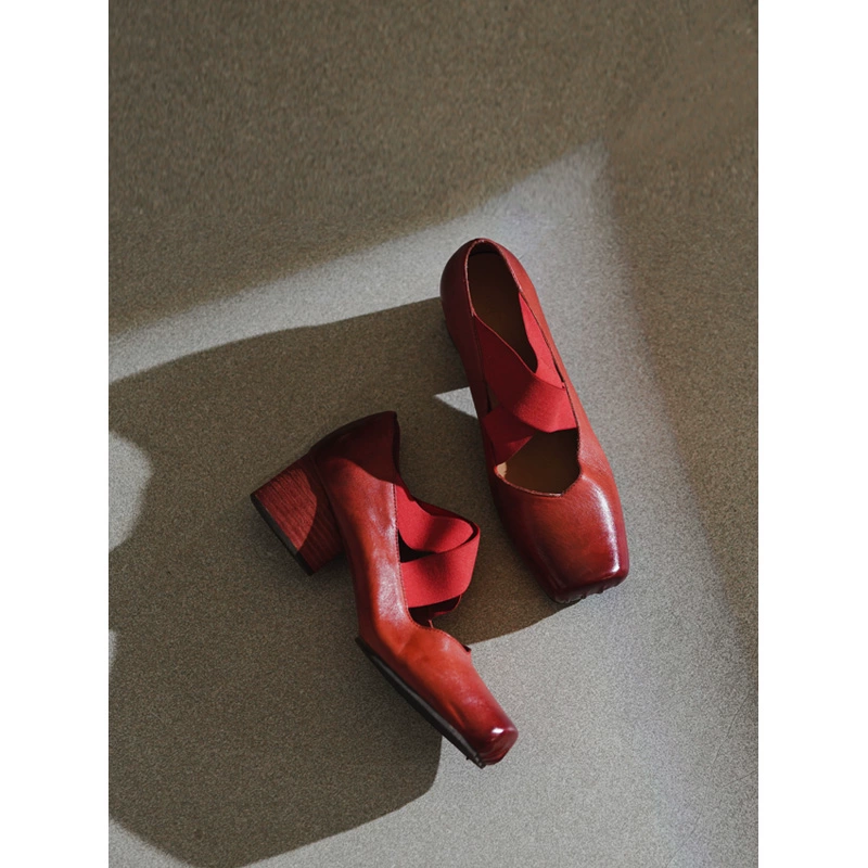 | nameOriginal | Classic washed horsehide V-neck rub color pig nose women's shoes |