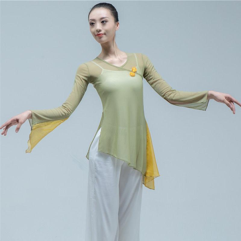 | nameOriginal | Classical dance body rhyme gauze clothing art test dance clothing women's elegant Chinese antique practice clothing performance folk dance top |