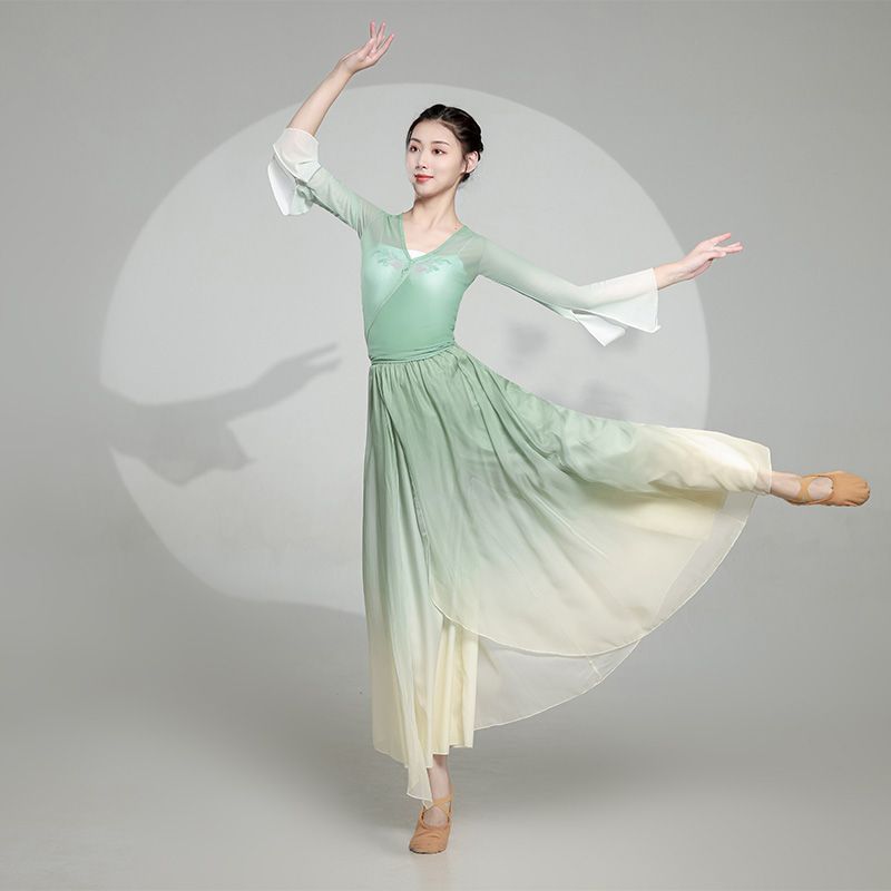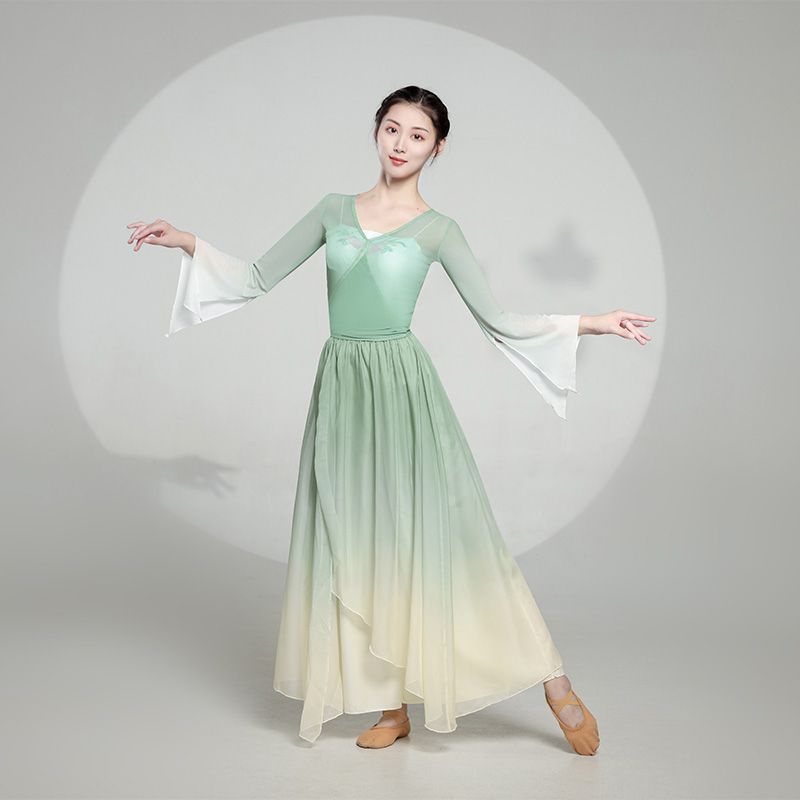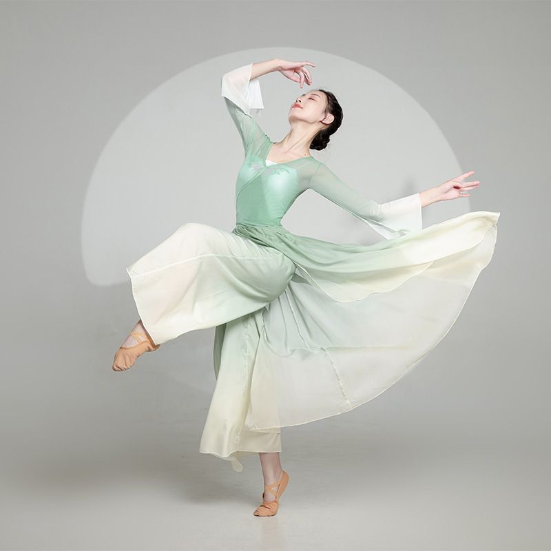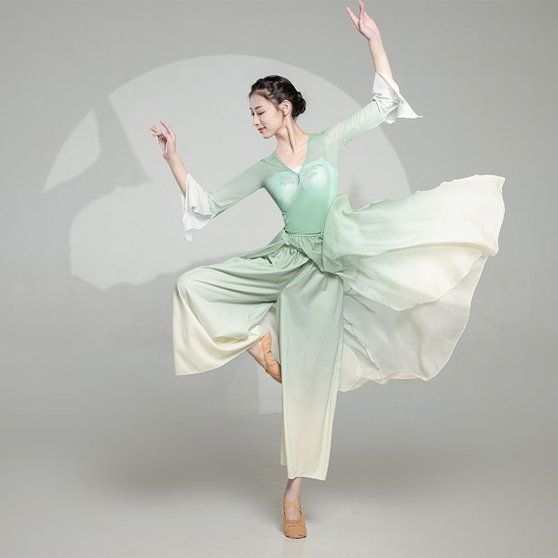 Classical dance body rhyme gradient stretch yarn clothing Chinese dance elegant top women’s performance clothing dance skirt pants pants suit