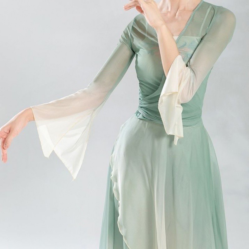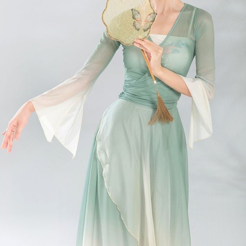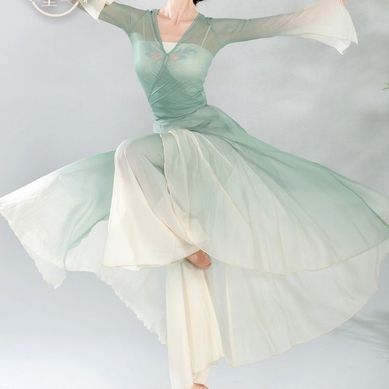 | nameOriginal | Classical dance body rhyme gradient stretch yarn clothing Chinese dance elegant top women's performance clothing dance skirt pants pants suit |