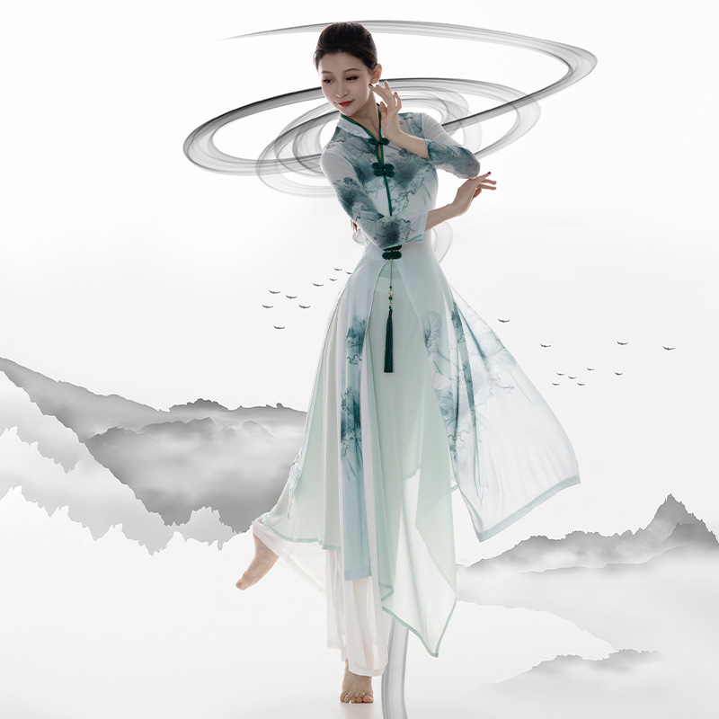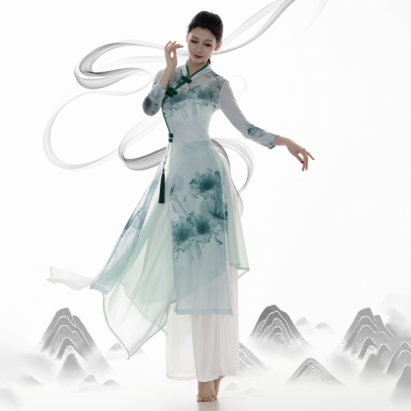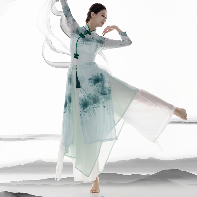 Classical dance cheongsam dance clothing Chinese dance practice clothing body charm gauze top performance clothing pan