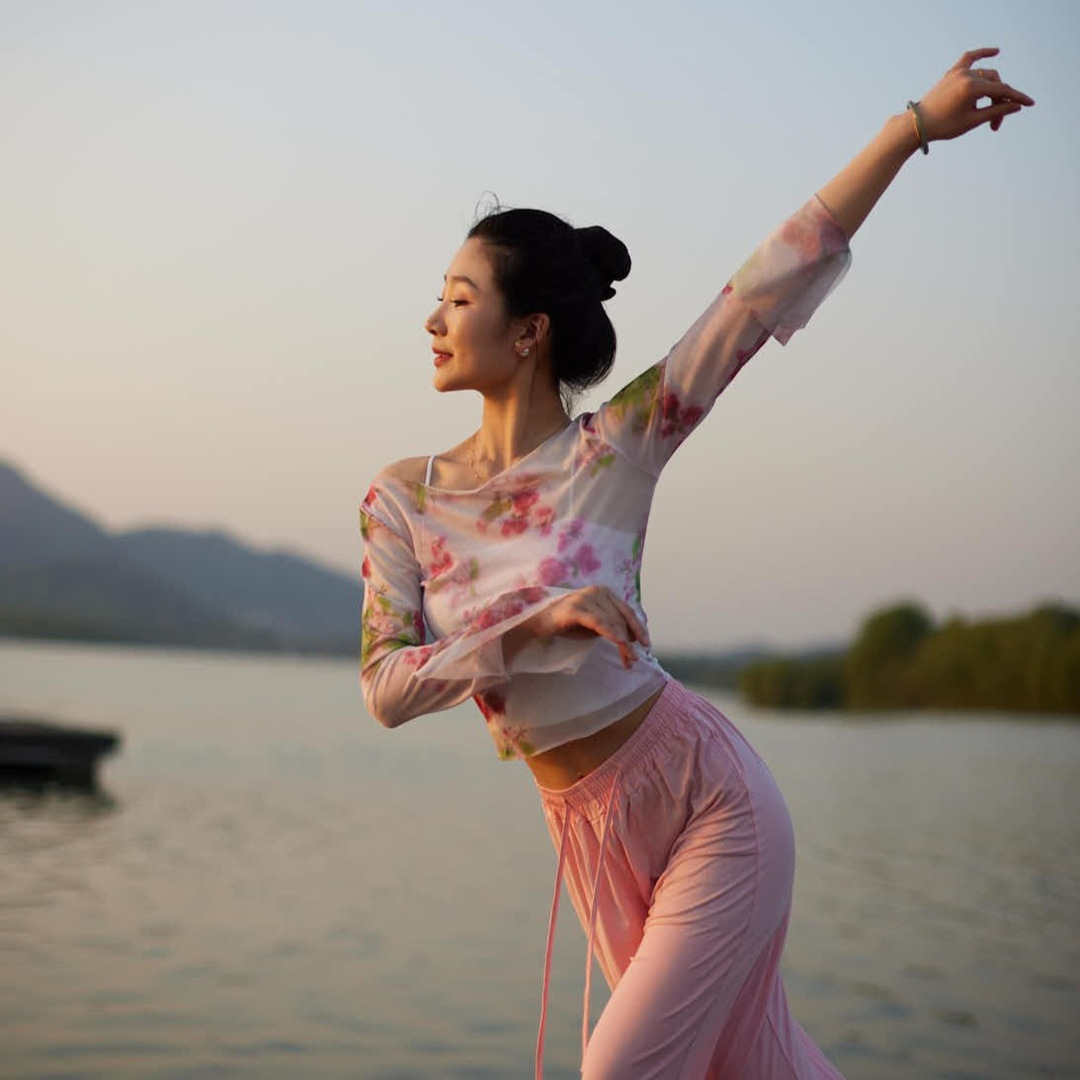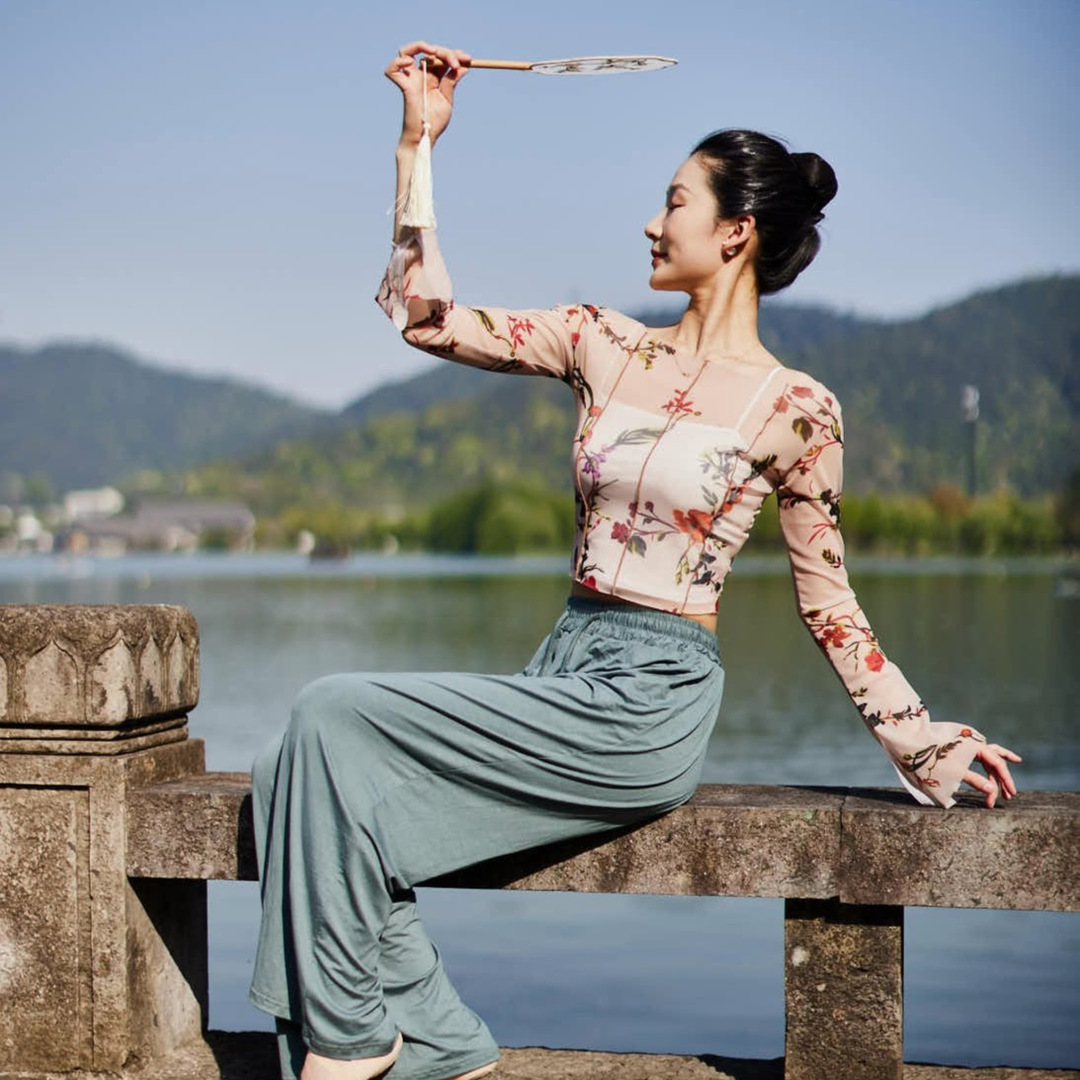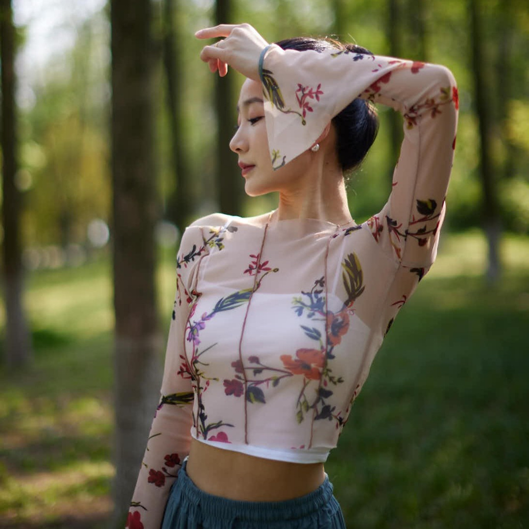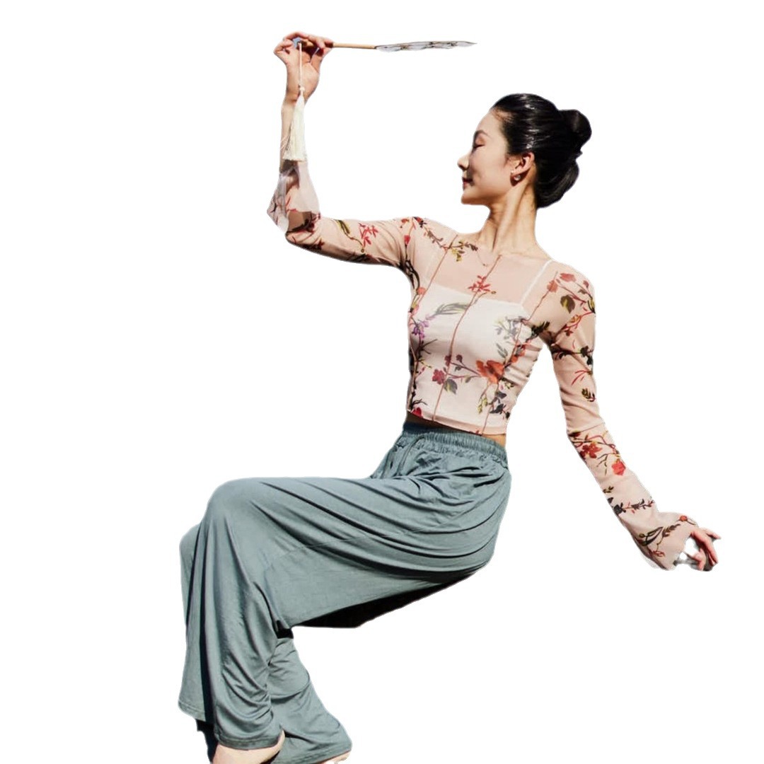 Classical Dance Clothes Gauze Clothes Women’s Summer New Body Rhyme Top Dancing Art Test Body Training Clothes Retro Printed Clothing