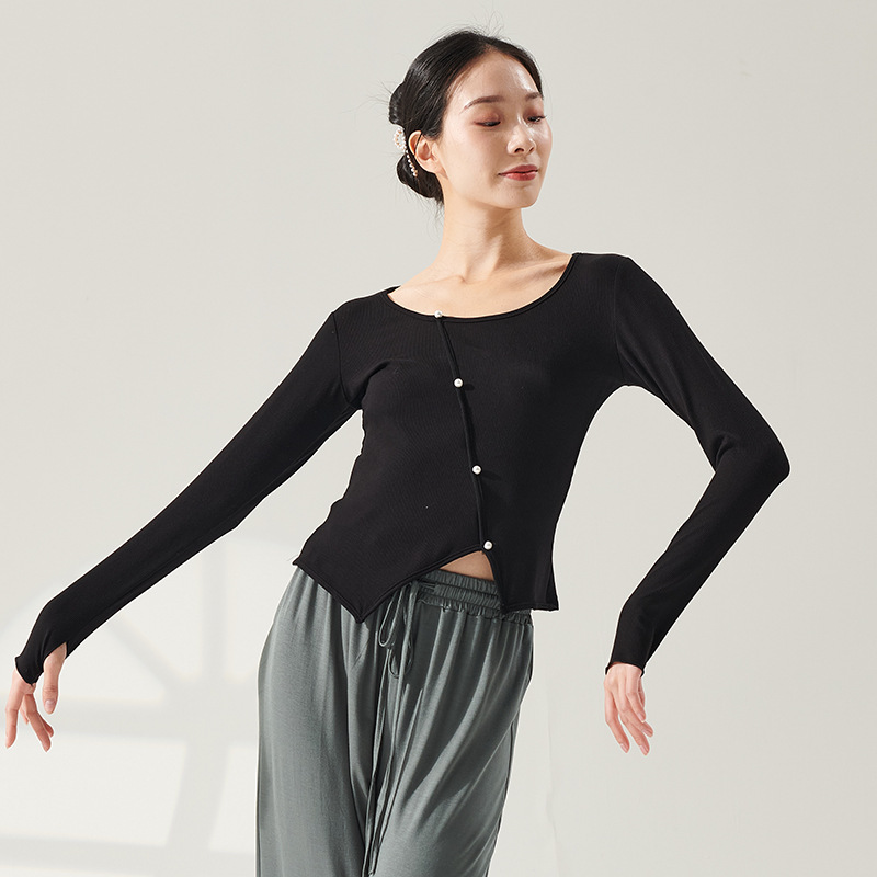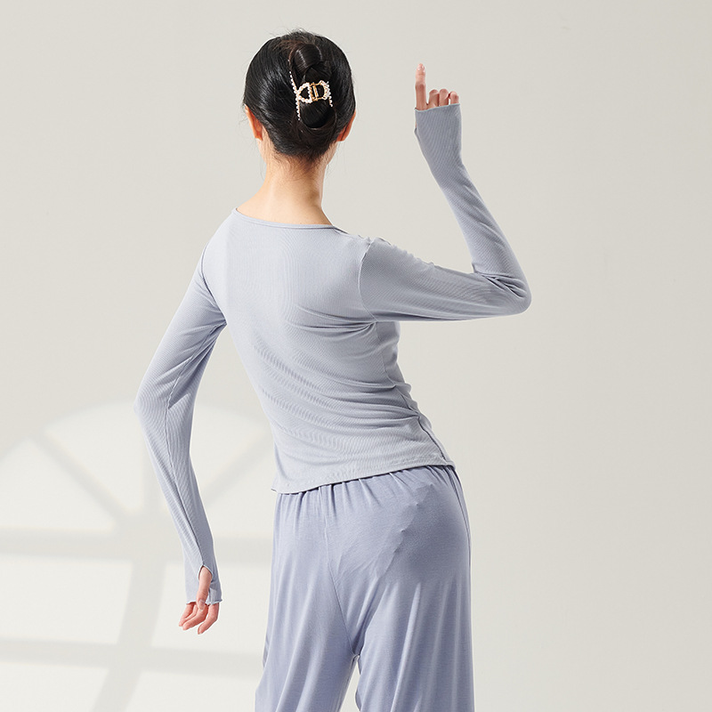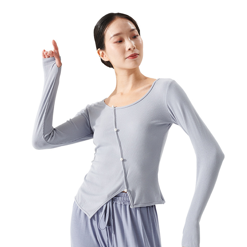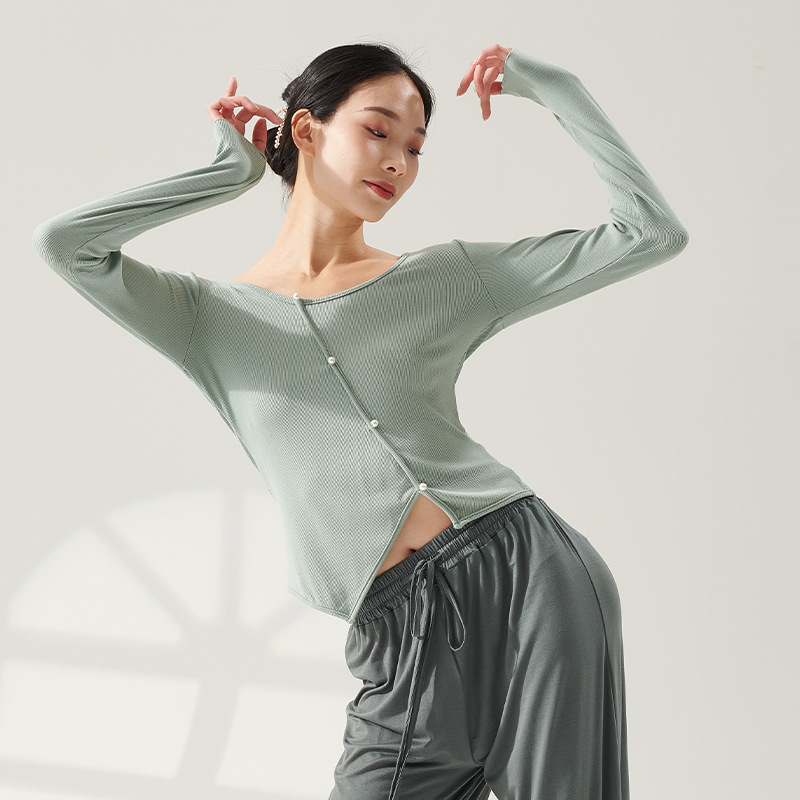 Classical dance clothes top female adult oblique breasted Finger Set long sleeve large neckline Chinese dance body yoga clothes