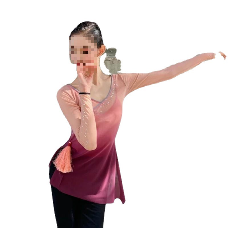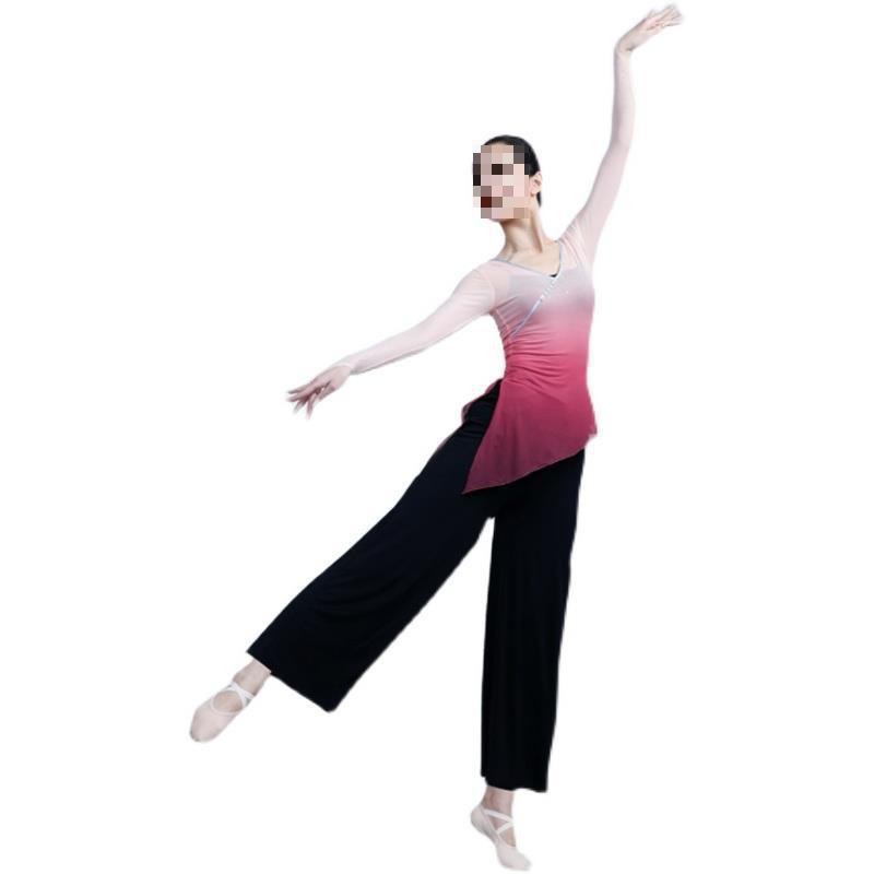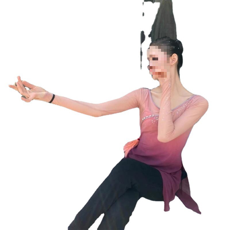 | nameOriginal | Classical dance clothing ancient dance body rhyme gauze clothing dance practice clothing dance art test gradient female ballet performance top |