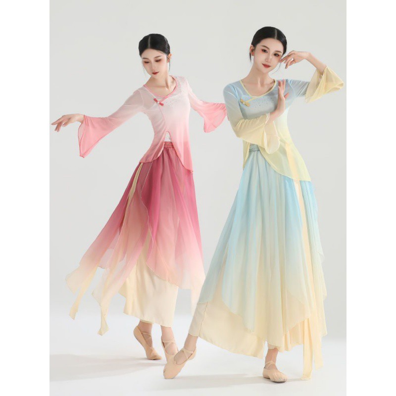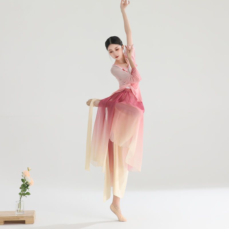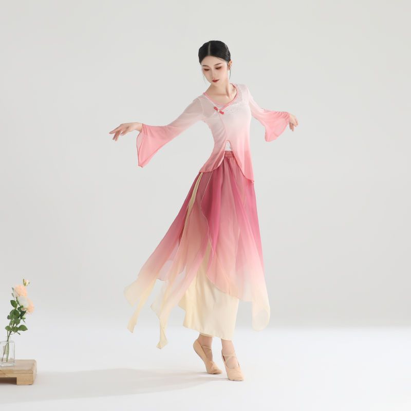 Classical Dance Clothing Women’s Elegant Gauze Clothing Chinese Dance Practice Clothing Women’s Rhyme Fairy Stretch Top Performance Clothing suit
