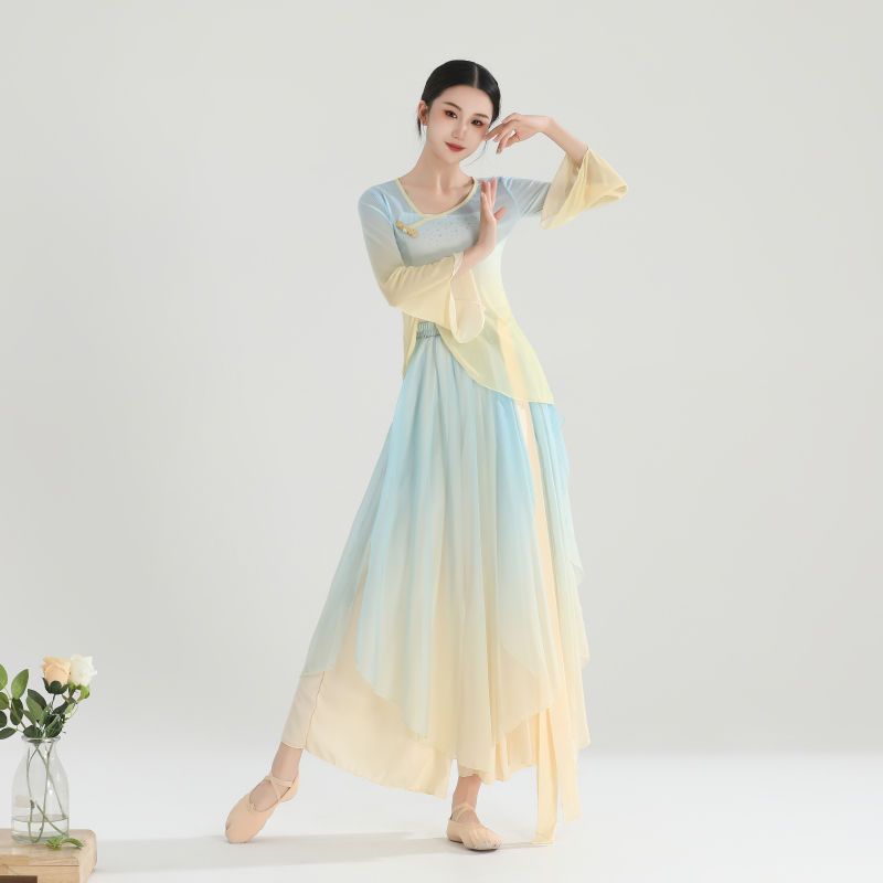 Classical Dance Clothing Women's Elegant Gauze Clothing Chinese Dance Practice Clothing Women's Rhyme Fairy Stretch Top Performance Clothing suit