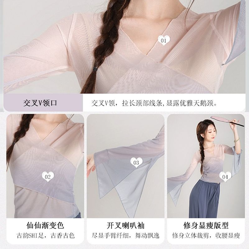 | nameOriginal | Classical Dance Gauze Costume Performance Costume Women's Elegant Fairy Style Costume Women's Chinese Dance Practice Costume Mesh Dance Top |