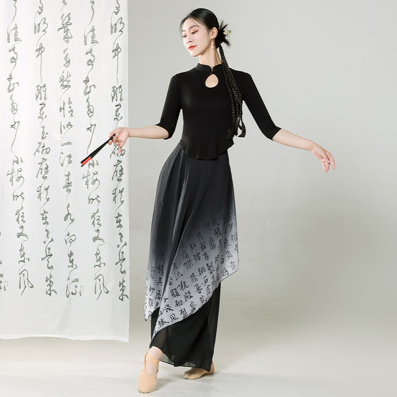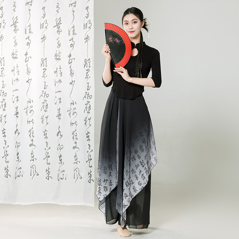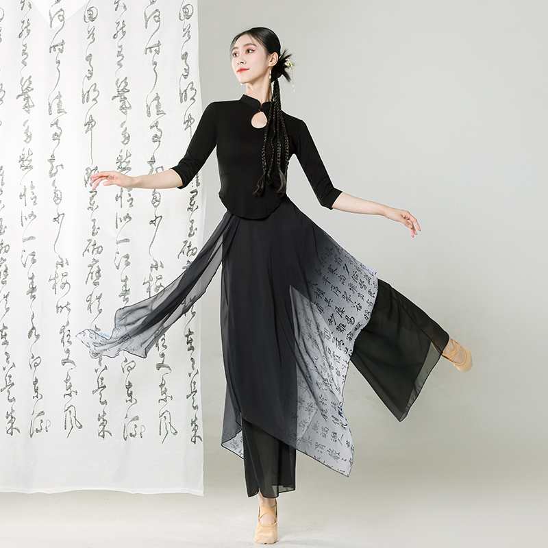 | nameOriginal | Classical Dance Practice Clothing Autumn and Winter Black Guofeng Cheongsam Top Chinese Character Printing Wide Leg Pants Skirt Dance Clothing Art Examination Clothing |