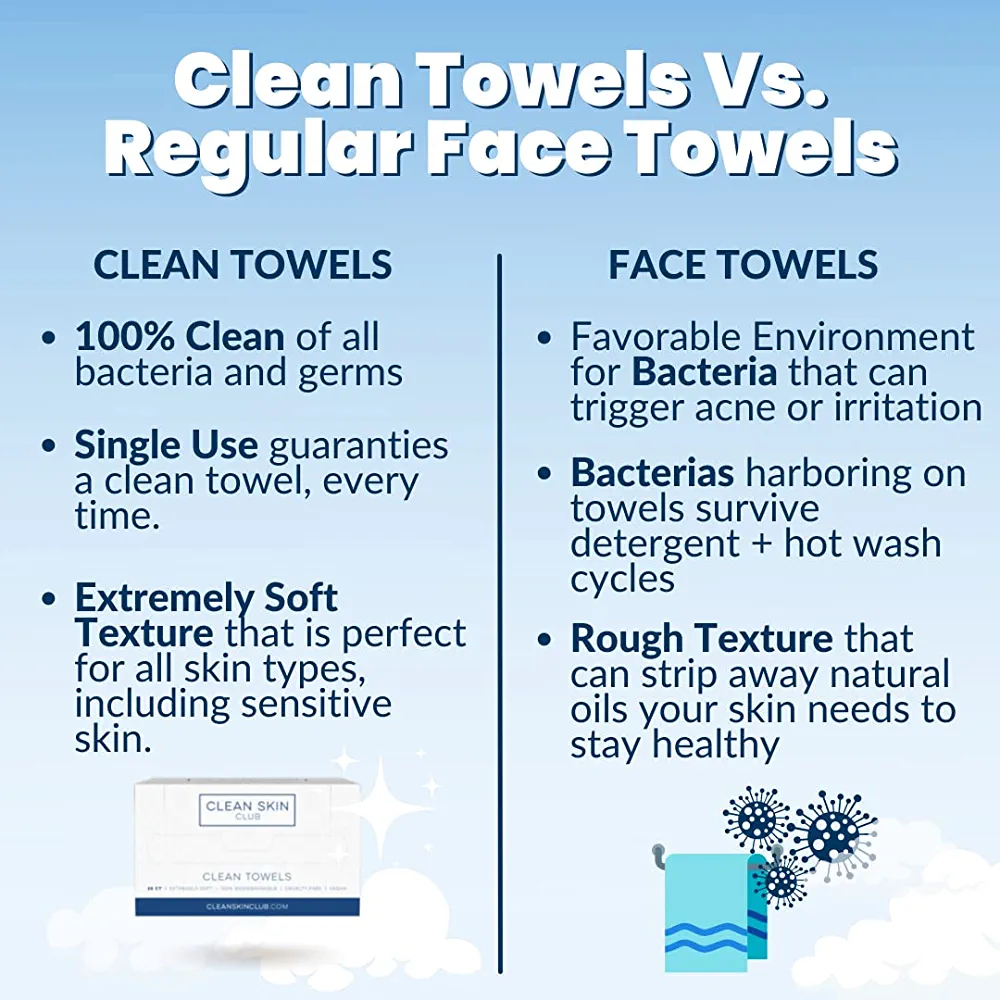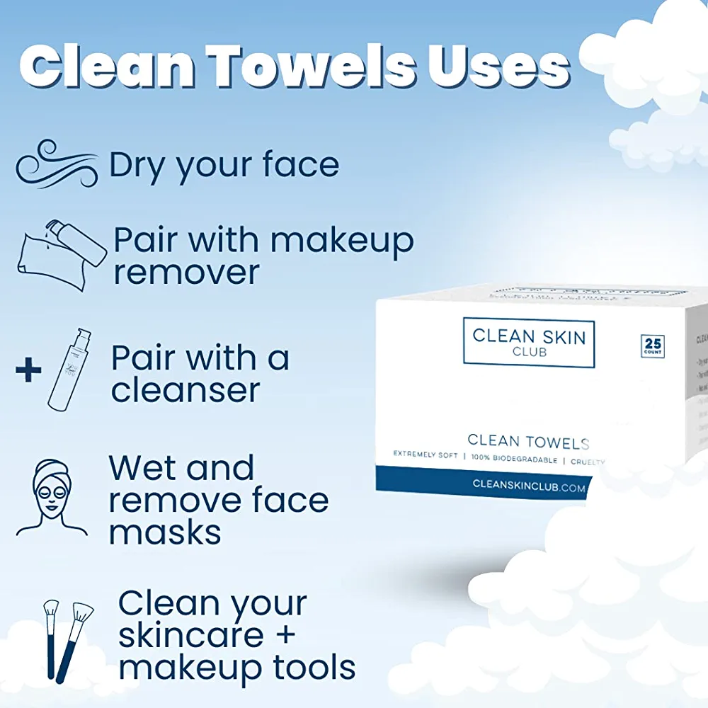 | nameOriginal | Clean Skin Club Clean Towels, Worlds 1ST Biodegradable Face Towel, Disposable Makeup Removing Wipes, Dermatology Tested & Approved, 100% Organic & Cruelty Free, Super Soft For Sensitive Skin |