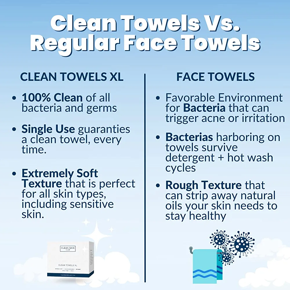 | nameOriginal | Clean Skin Club Clean Towels, 100% USDA Biobased Dermatologist Approved Face Towel, Disposable Clinically Tested Face Towelette, Facial Washcloth, Makeup Remover Dry Wipes, Ultra Soft, 50 ct, 1 pack |