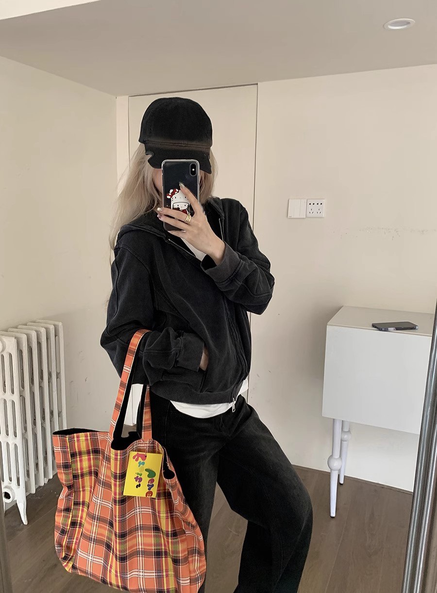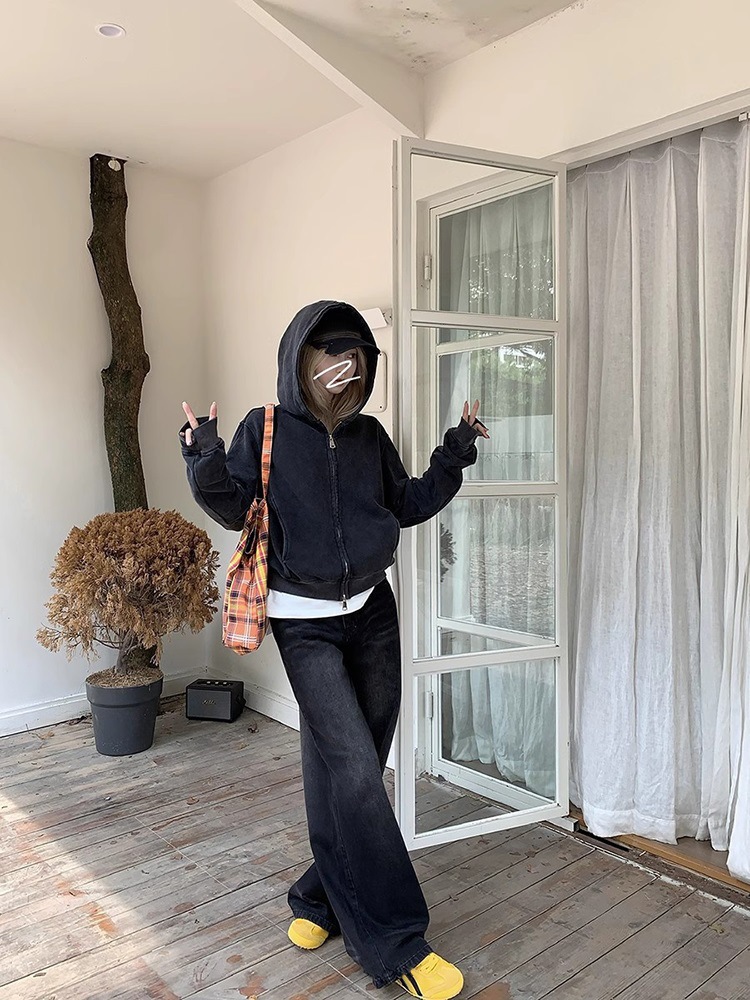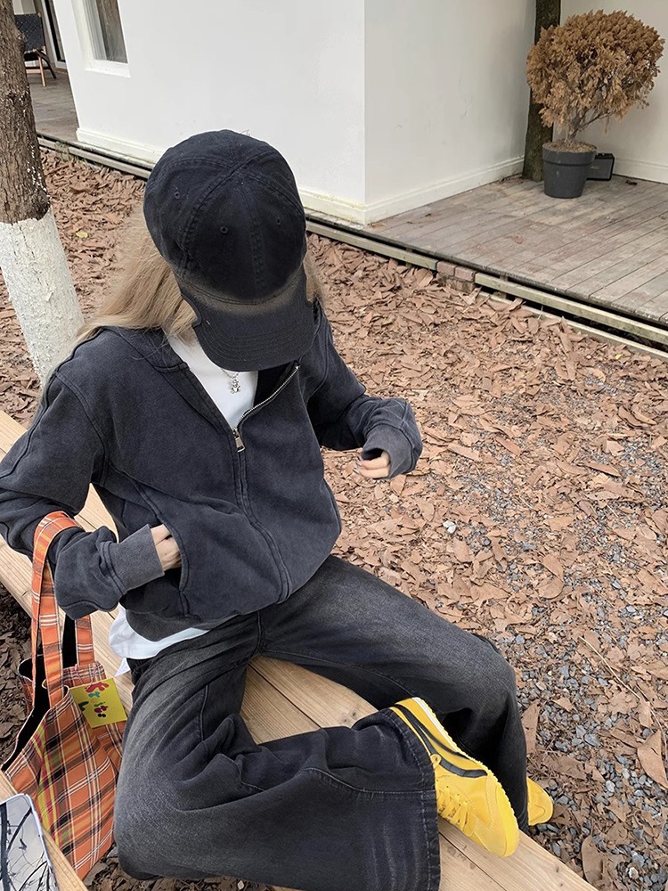 | nameOriginal | Cleanfit Grey Hooded Sweater Coat Women's Early Spring American Style Washed Old Zipper Short Cardigan Top |