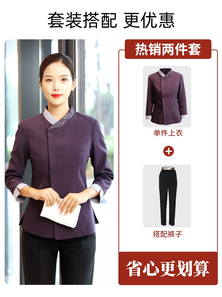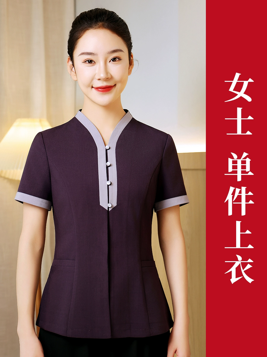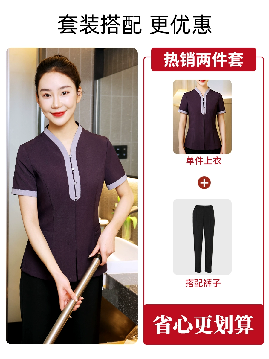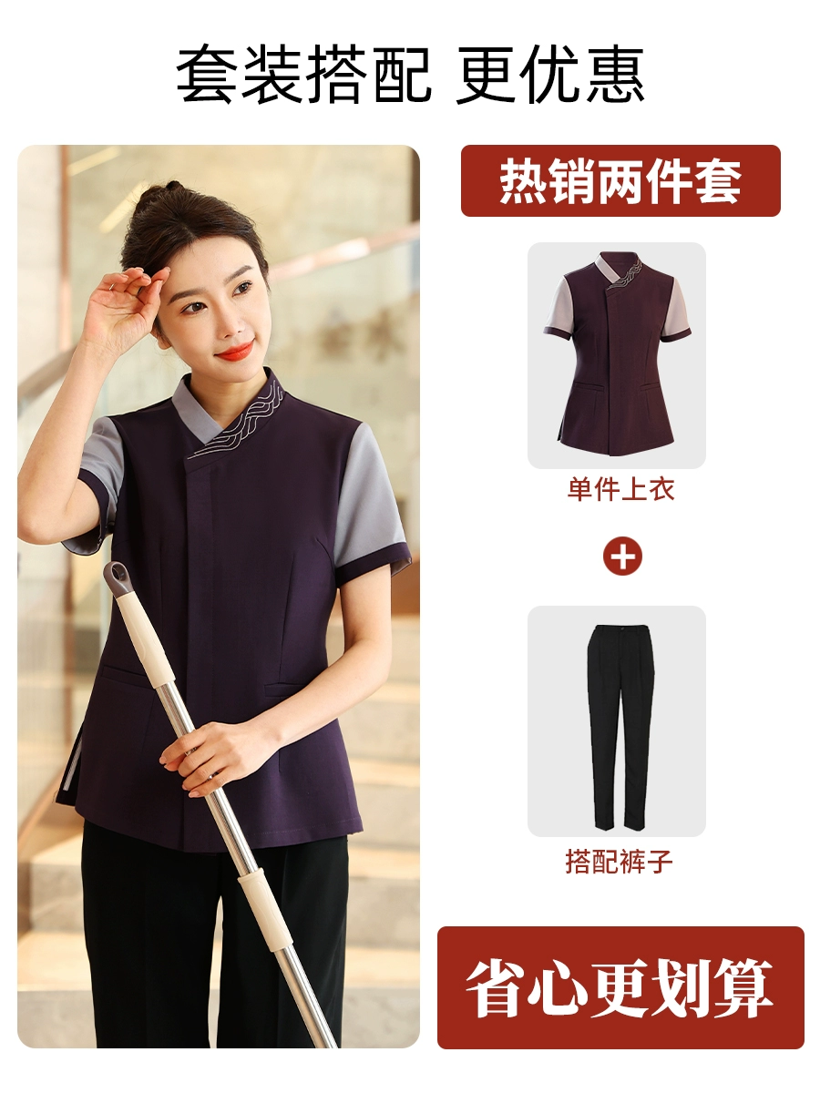 | nameOriginal | Cleaning aunt's work clothes short-sleeved high-end purple hotel room attendant sister-in-law property summer suit |