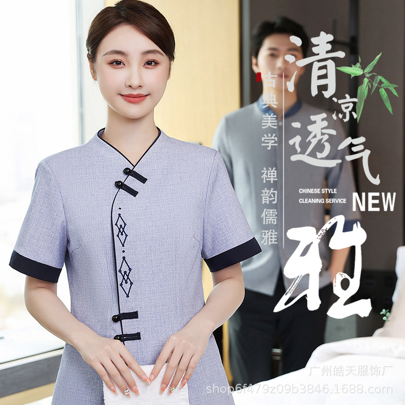 | nameOriginal | Cleaning clothes short sleeve hotel room PA aunt cleaning overalls summer hotel property room sweep waiter clothing |