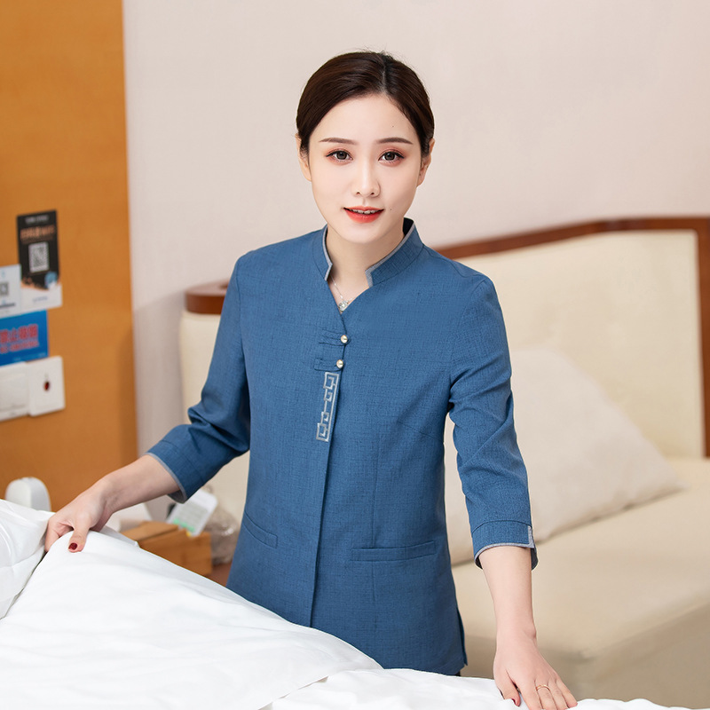 | nameOriginal | Cleaning Clothes Short-sleeved Summer PA Hotel Room Hotel Cleaning Auntie Property Cleaning Work Clothes Seven-sleeved Top |