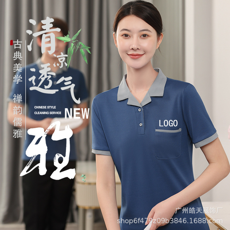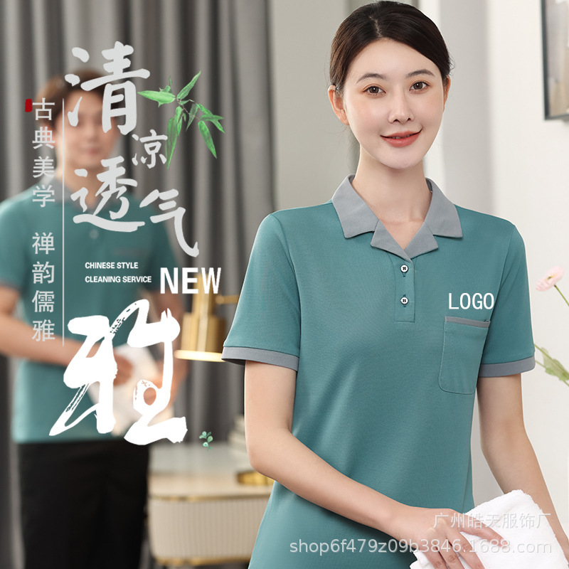 | nameOriginal | Cleaning overalls short sleeve summer cotton women's housekeeping hotel room property PA cleaner aunt T-shirt suit t |