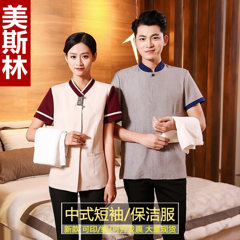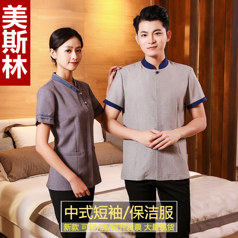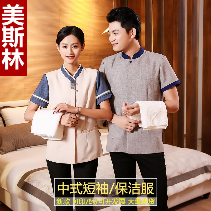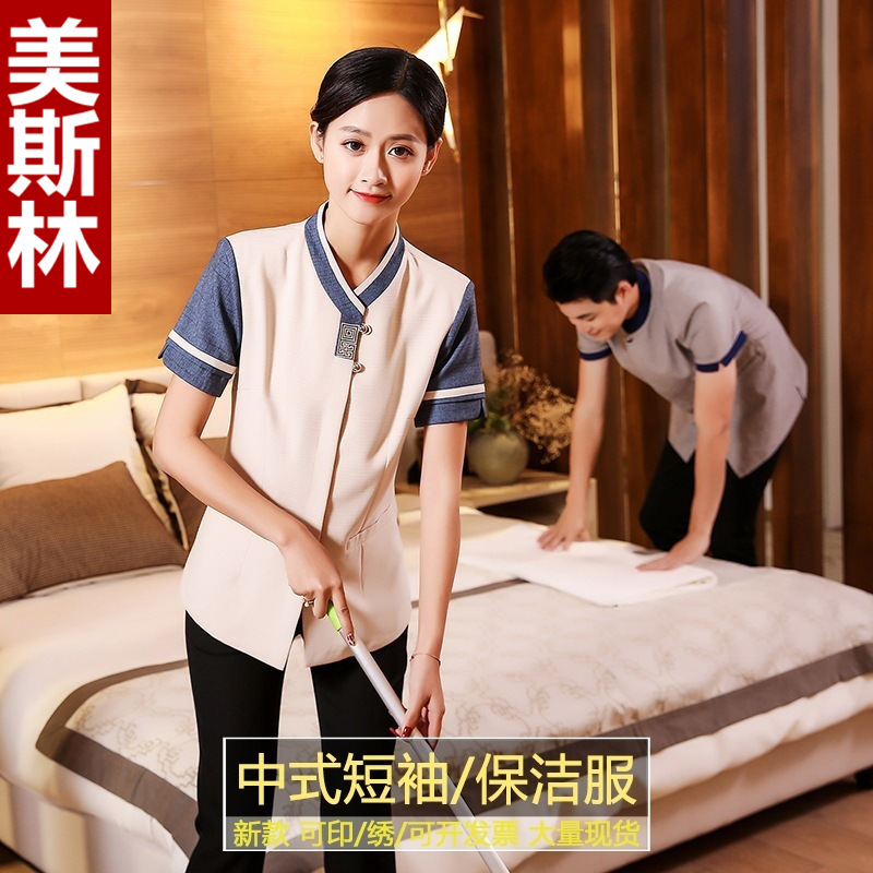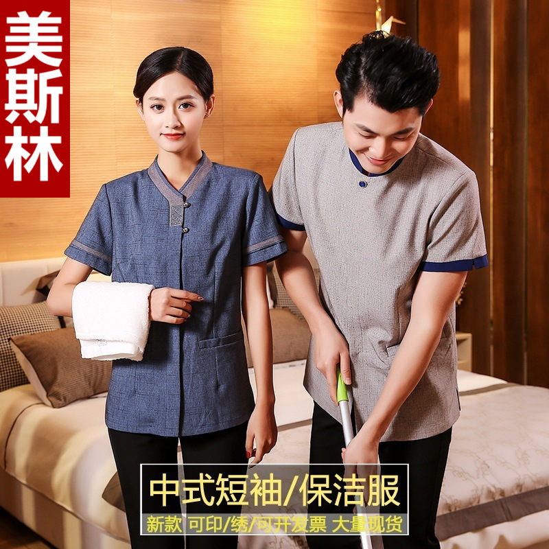 | nameOriginal | Cleaning work clothes women's hotel room cleaning aunt property cleaning clothes short sleeve linen PA hotel housekeeping clothing |