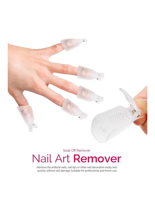 The 10-Piece Nail Remover Clip Set Clear is a must-have for anyone who loves to keep their nails looking neat and tidy. This set includes 10 clear nail remover clips that are designed to easily and safely remove gel or acrylic nails. The clips are made from high-quality materials that are durable and long-lasting, ensuring that you can use them again and again. The clear design allows you to easily see the progress of the nail removal process, making it easier to know when your nails are ready. This set is perfect for both professional and personal use, and is a great addition to any nail care kit. With the 10-Piece Nail Remover Clip Set Clear, you can easily and safely remove your gel or acrylic nails in the comfort of your own home.