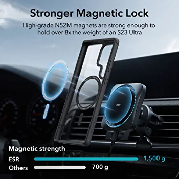 Upgrade your MagSafe experience with a more powerful magnetic lock that offers a holding force of 1,500 g. This ensures a stronger attachment with all MagSafe-style accessories, providing true power in a snap. The magnets are stronger than those found in your bare phone or official MagSafe cases, ensuring a more secure hold.