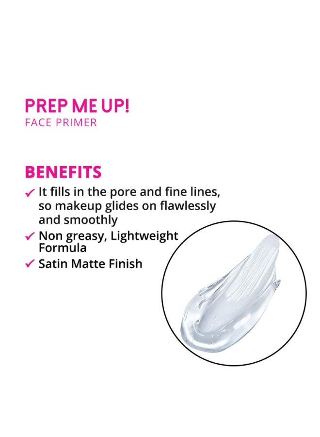 Prep Me Up! Face Primer Clear is a must-have product for anyone who wants to achieve a flawless makeup look. This clear face primer is designed to create a smooth and even base for your foundation, concealer, and other makeup products. It helps to minimize the appearance of pores, fine lines, and wrinkles, while also providing a long-lasting hold for your makeup. The lightweight formula is easy to apply and absorbs quickly into the skin, leaving it feeling soft and silky. Prep Me Up! Face Primer Clear is suitable for all skin types and can be used alone or under makeup for a flawless finish that lasts all day. Get ready to take your makeup game to the next level with Prep Me Up! Face Primer Clear.